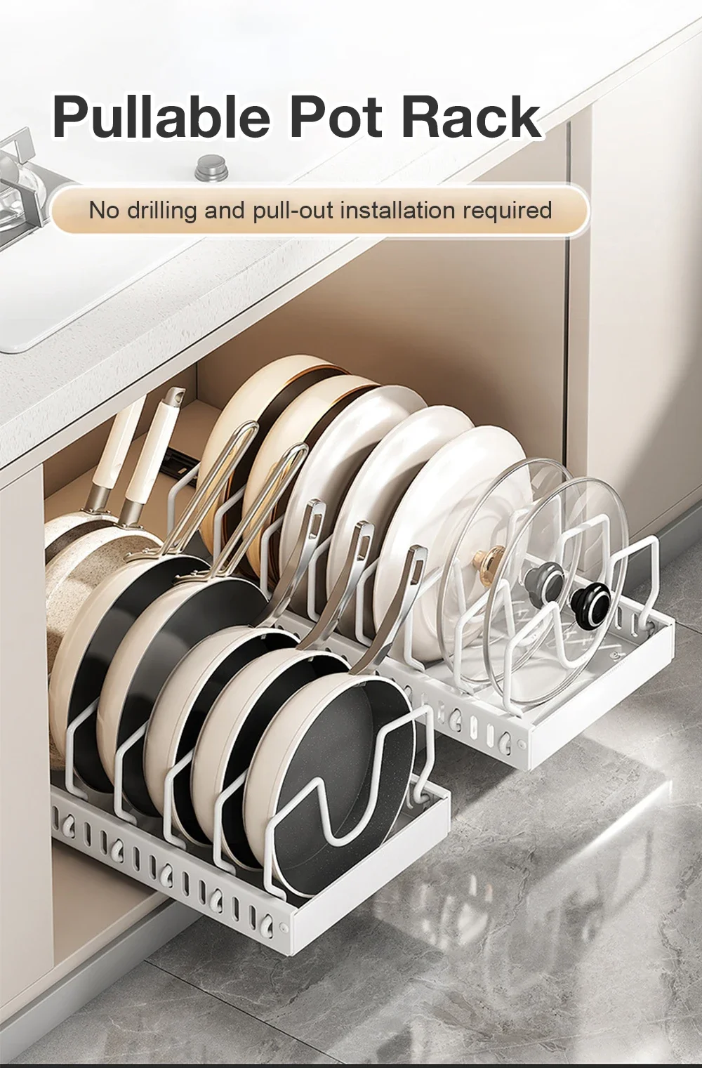 Novo organizador multifuncional de cozinha extraível para panelas/panelas tampa deslizante