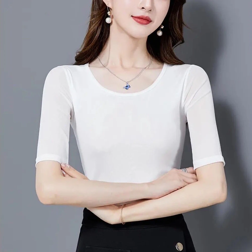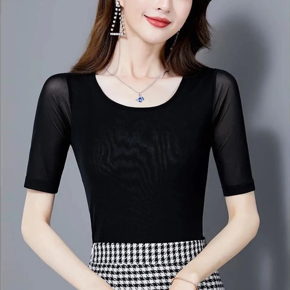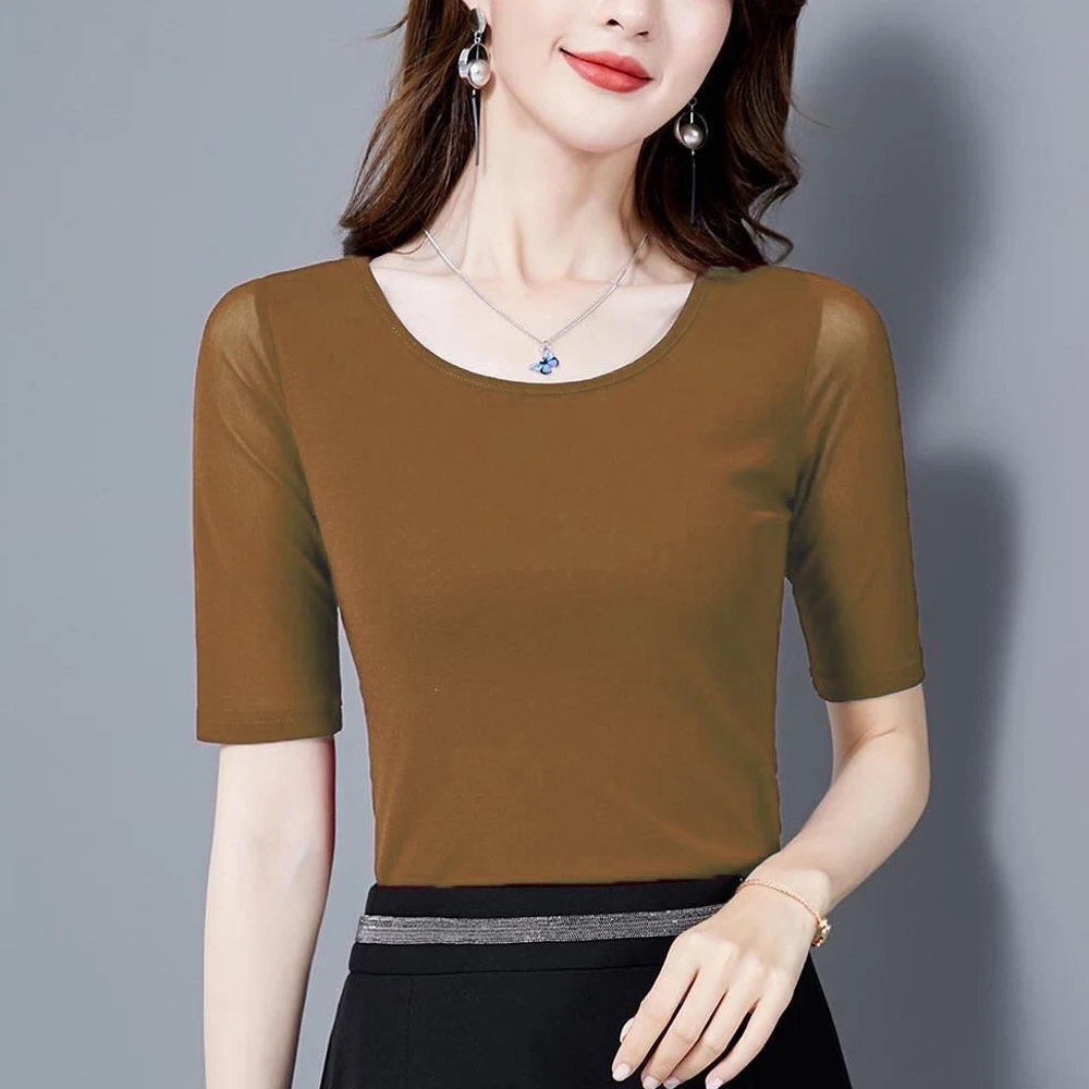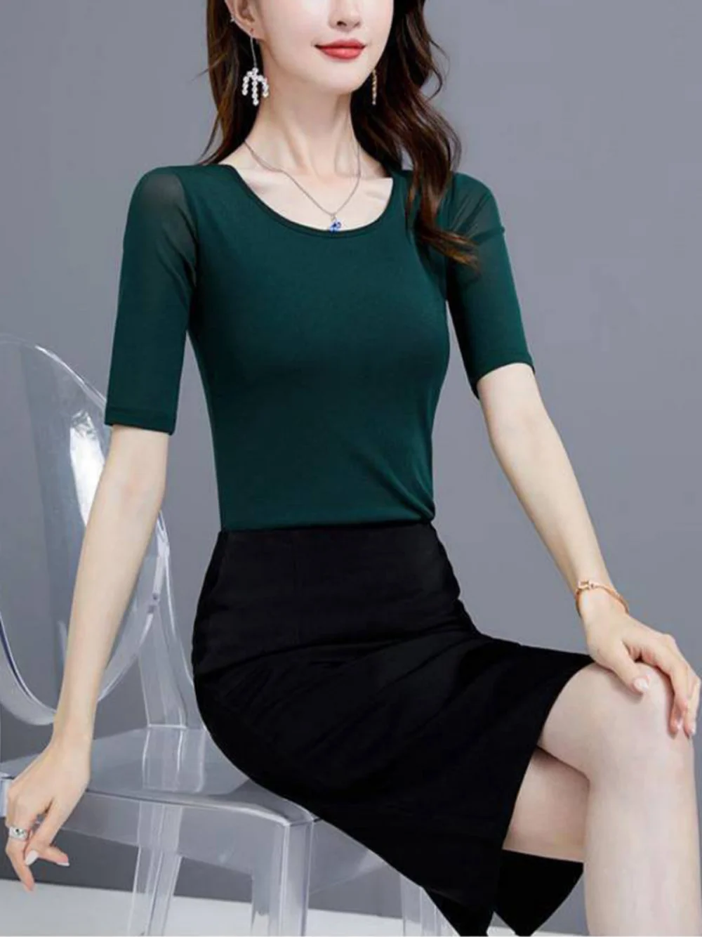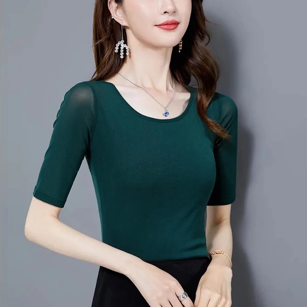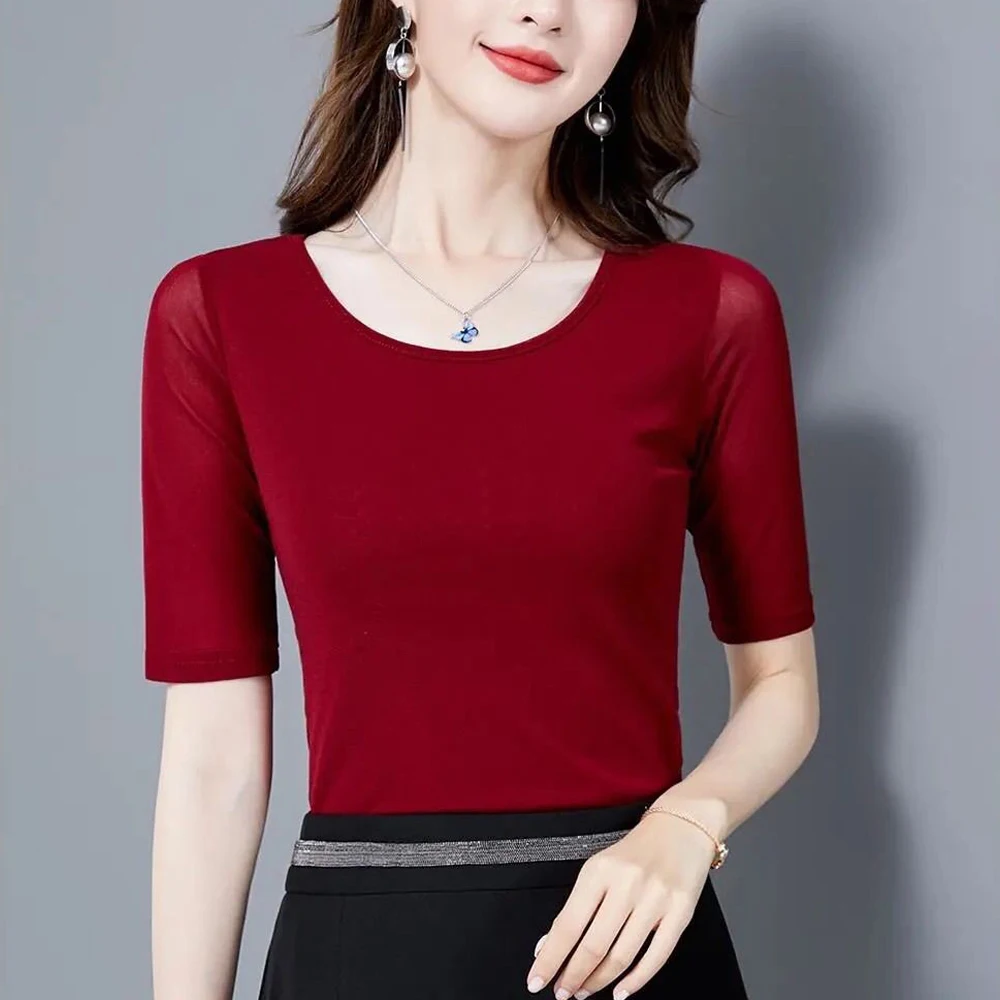 Nova malha t camisa feminina S-3XL básico o-pescoço camisa de manga curta feminina magro estiramento bottoming topo vermelho verde senhoras sexy t