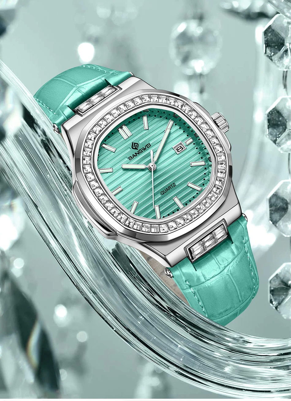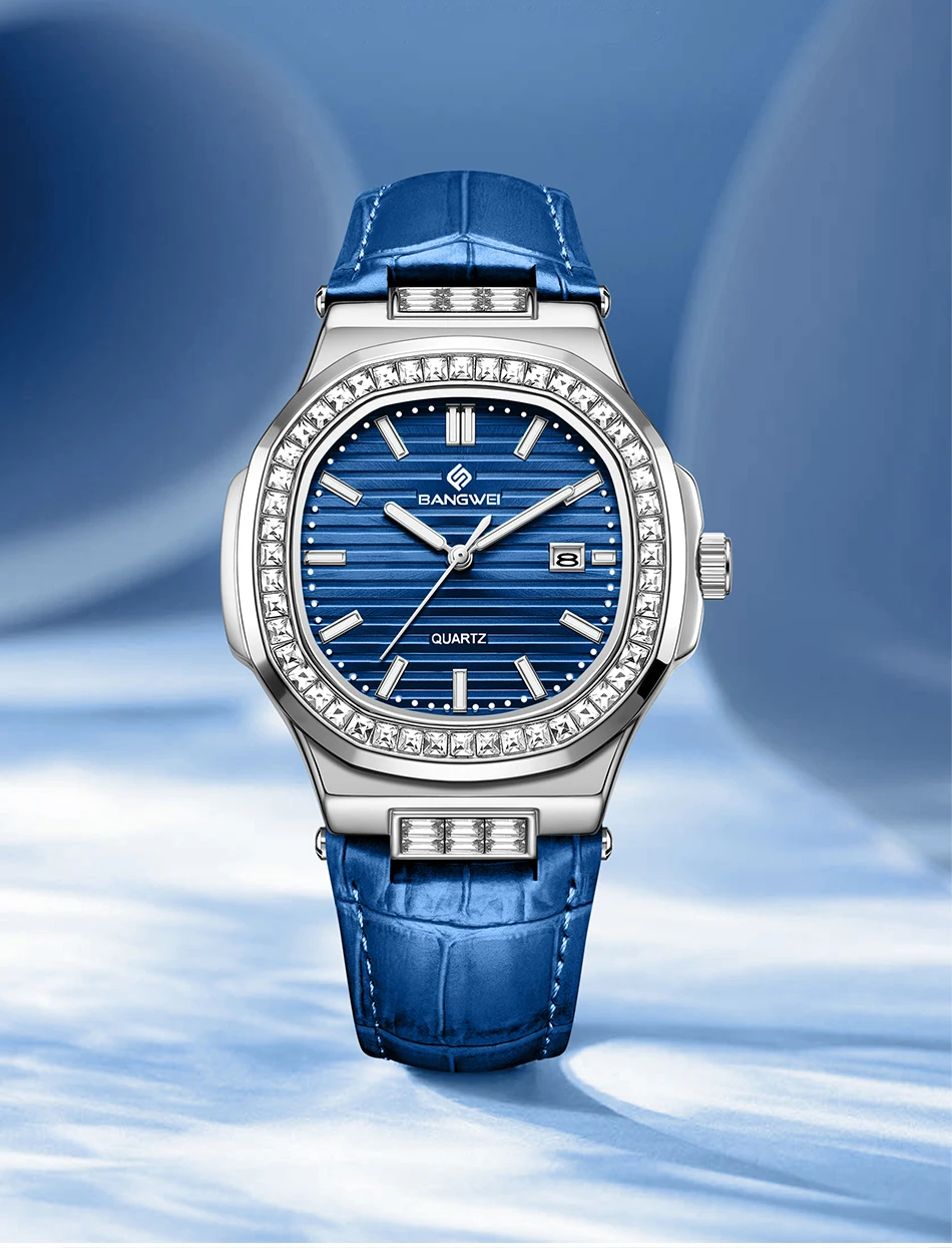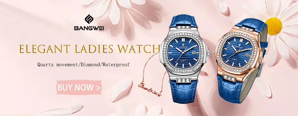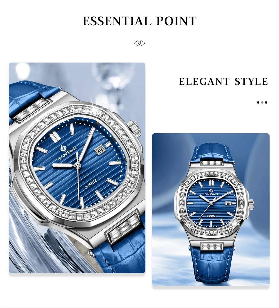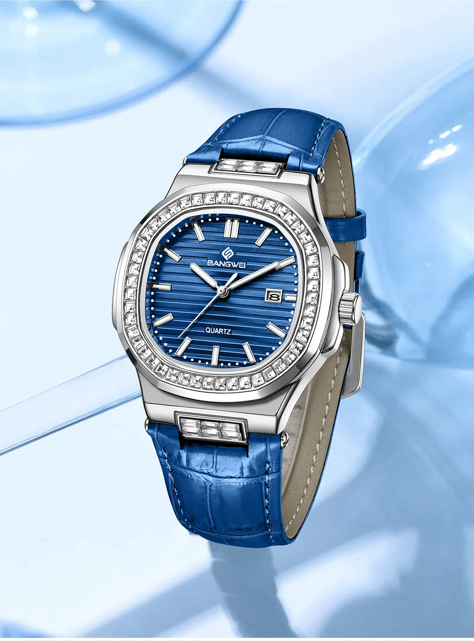 - > Nova moda bangwei elegante luxo quartzo mulher relógio simples dial diamante retro couro data à prova dwaterproof água luminosa relógios femininos