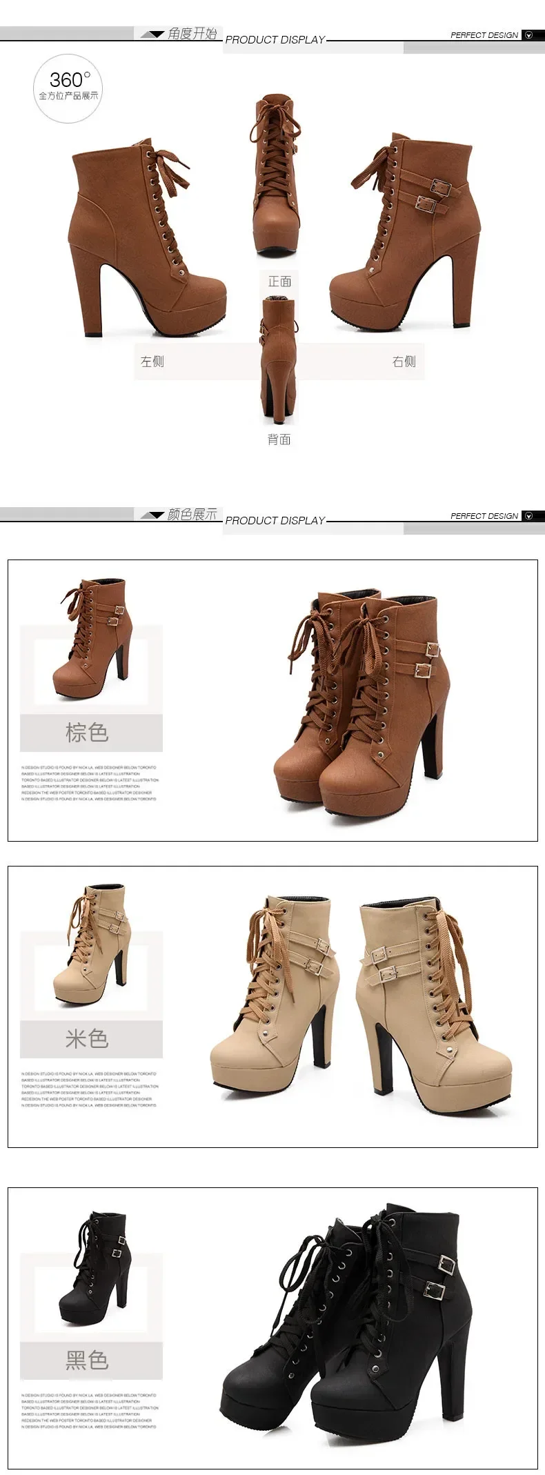 - > Novas bombas femininas sapatos das mulheres botas de sola grossa rendas até senhoras botas de tornozelo confortáveis saltos stiletto botas altas mujer
