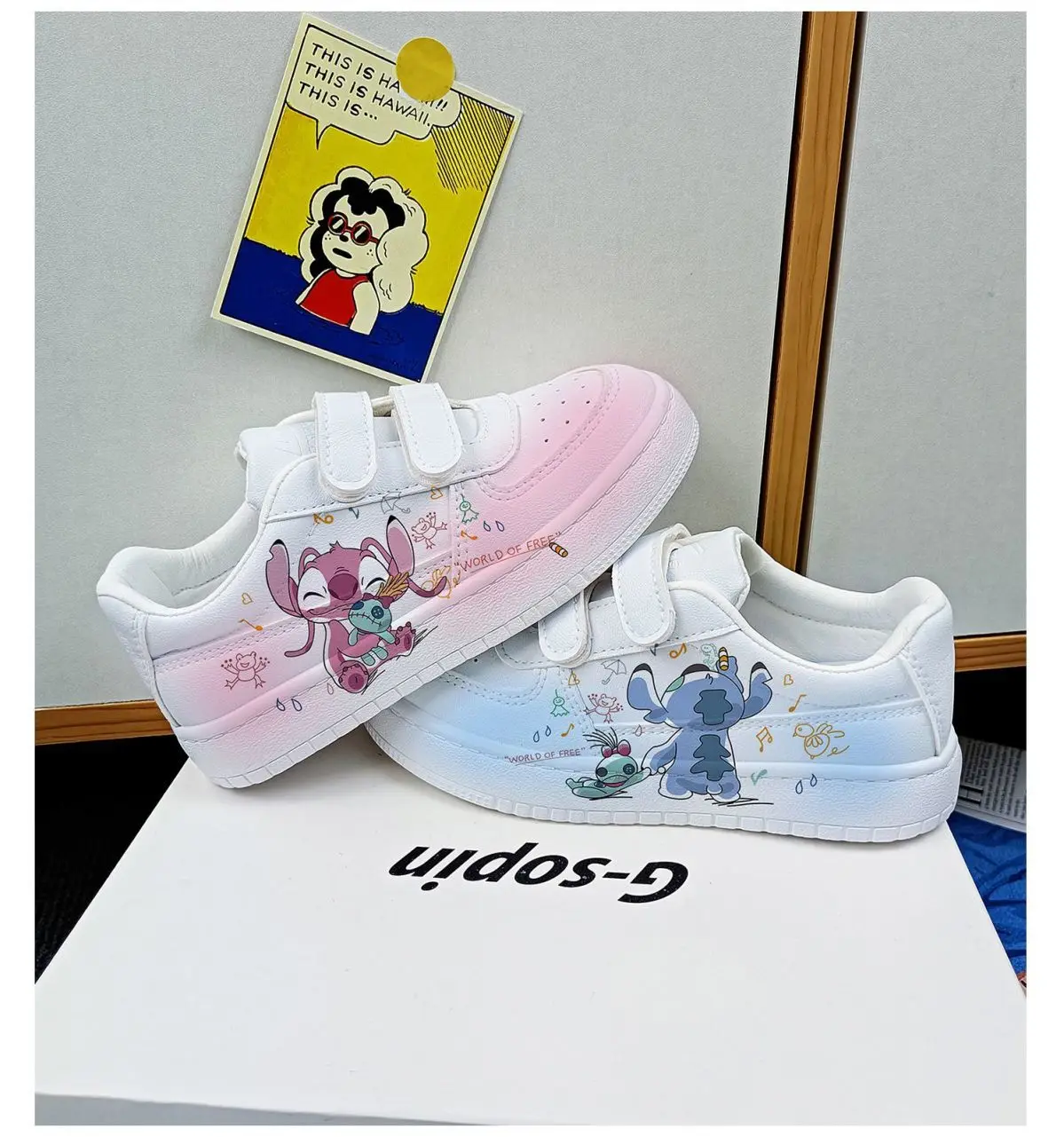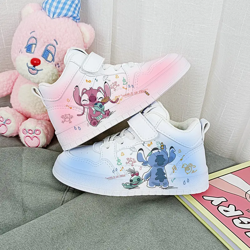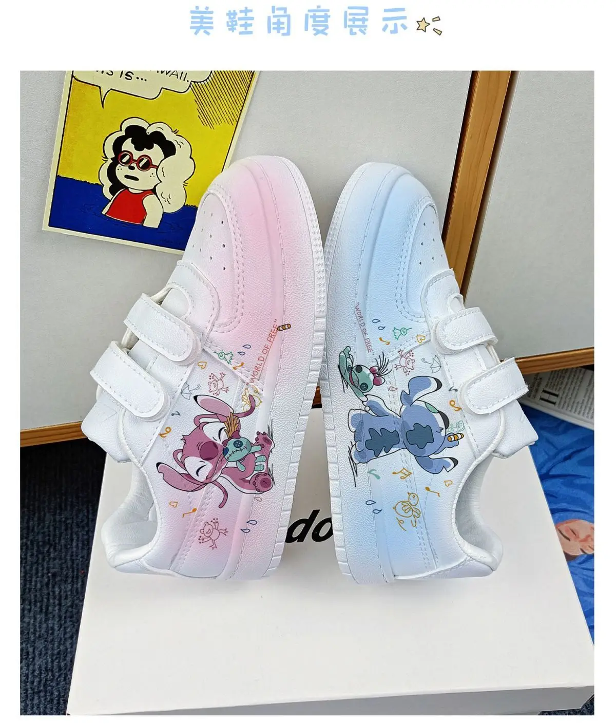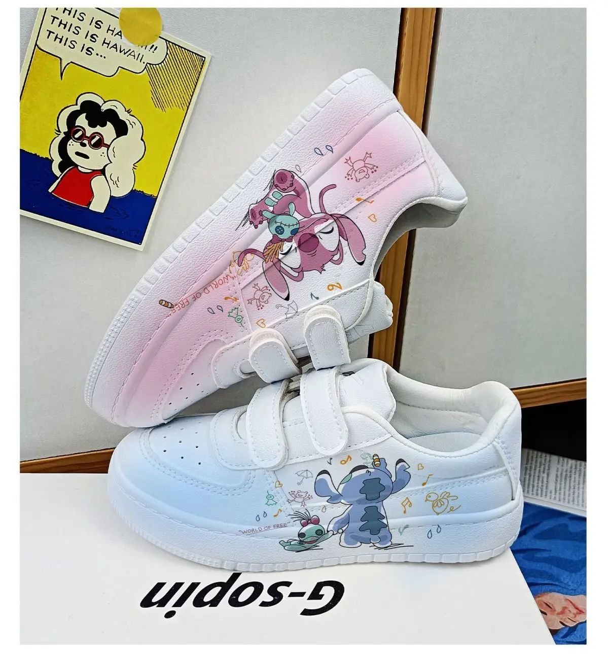 Novas crianças tênis de alta qualidade lilo & stitch impressão crianças sapatos esportivos dos desenhos animados tênis branco casual stellalou correndo