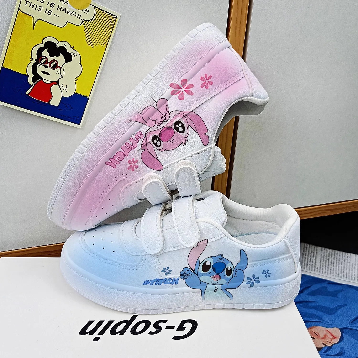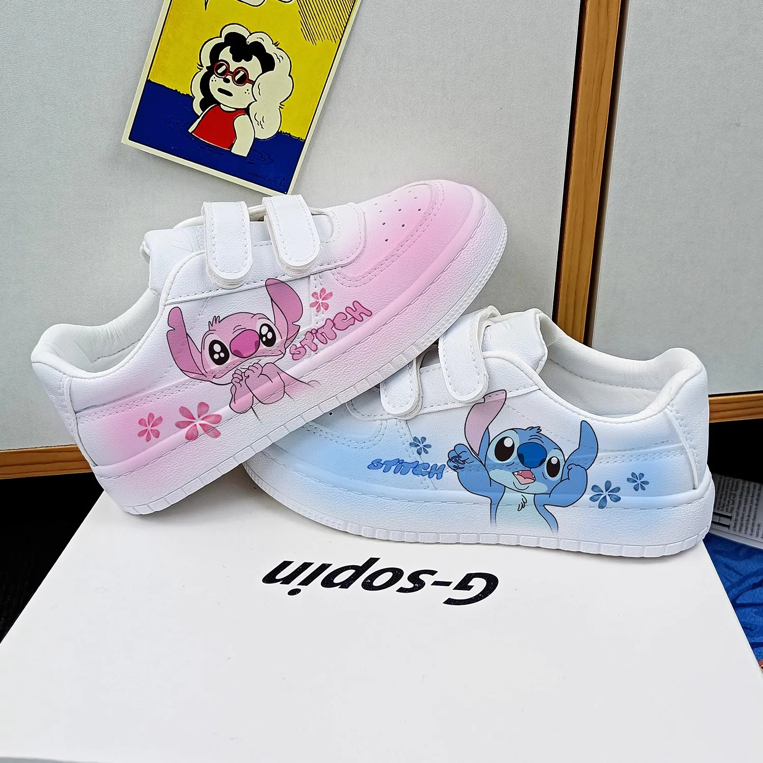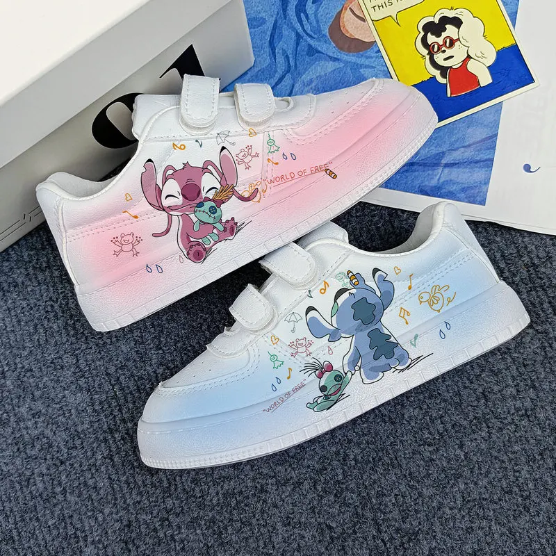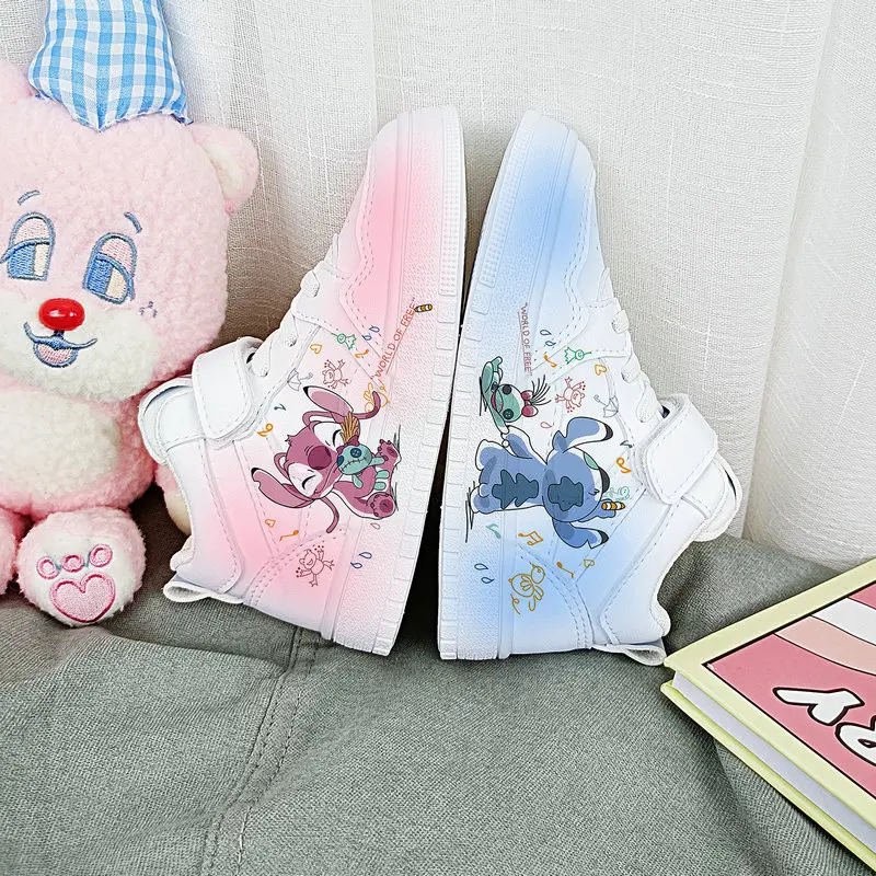 Novas crianças tênis de alta qualidade lilo & stitch impressão crianças sapatos esportivos dos desenhos animados tênis branco casual stellalou correndo