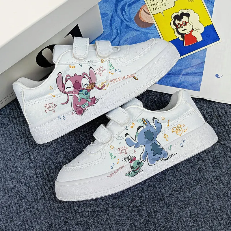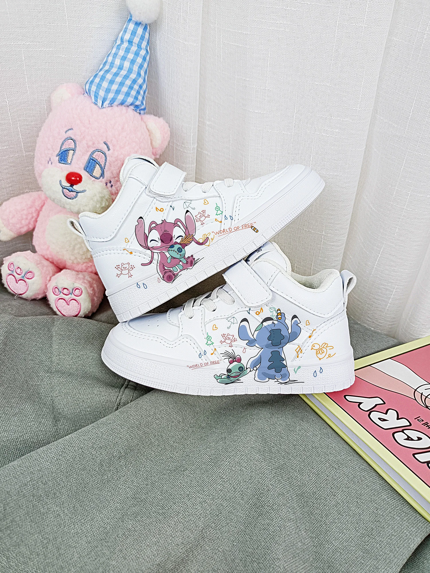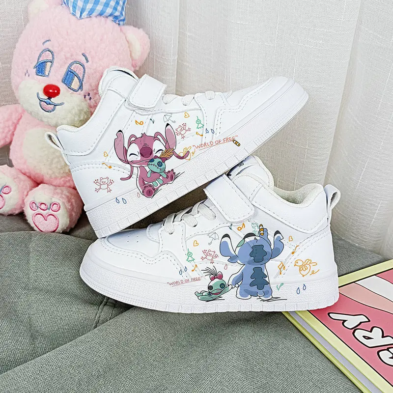 - > Novas crianças tênis de alta qualidade lilo & stitch impressão crianças sapatos esportivos dos desenhos animados tênis branco casual stellalou correndo