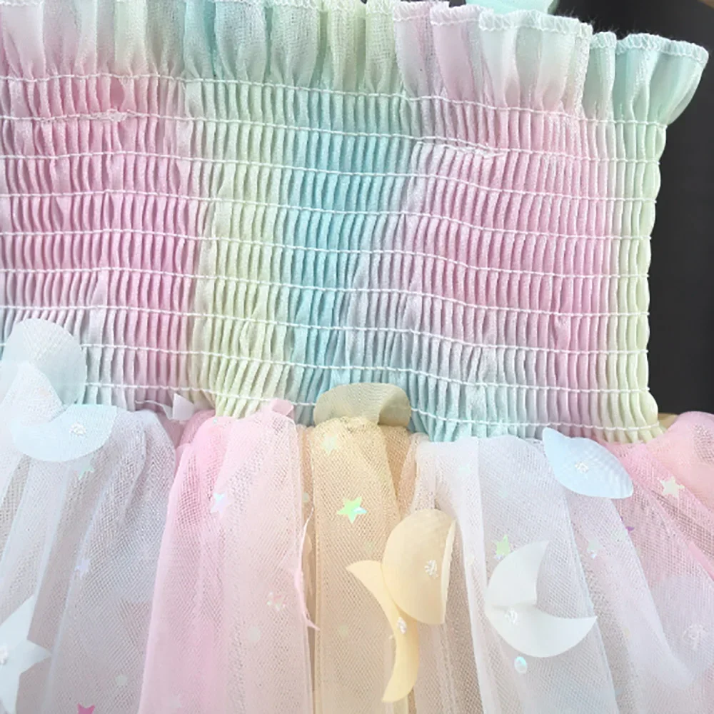 Novas meninas vestido de verão asas borboleta colorido sonho vestido de princesa vestido de festa de aniversário geométrico glitter vestido suspensórios