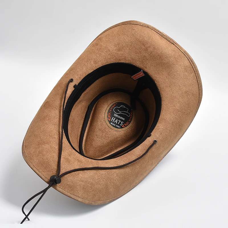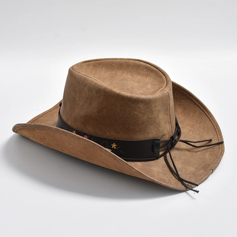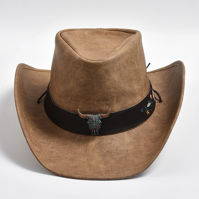 Novo 100% couro ocidental cowboy chapéu masculino aba larga cavalheiro igreja jazz boné cowgirl chapéus sombrero hombre