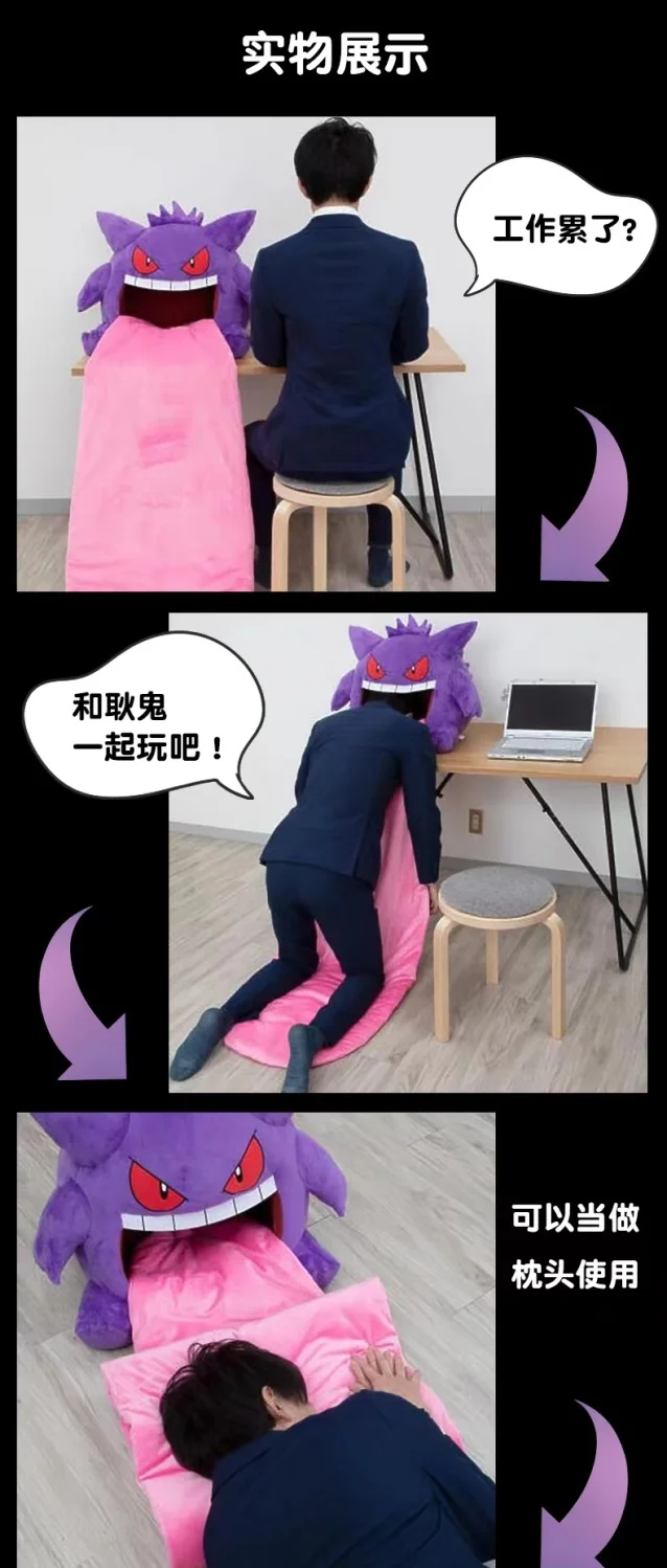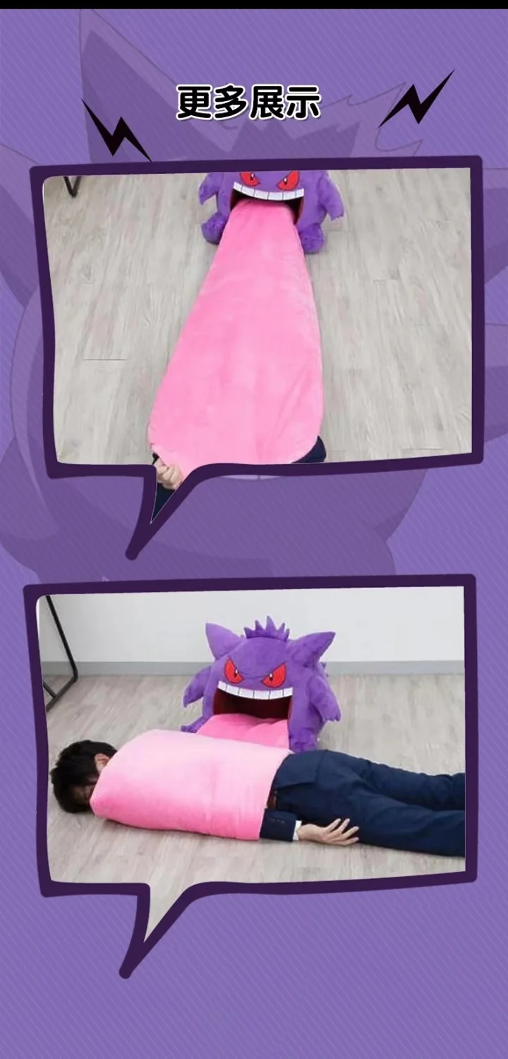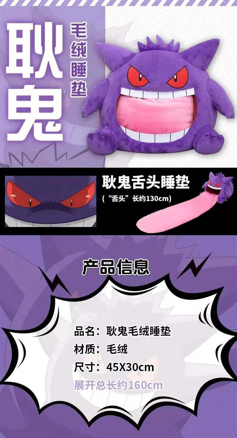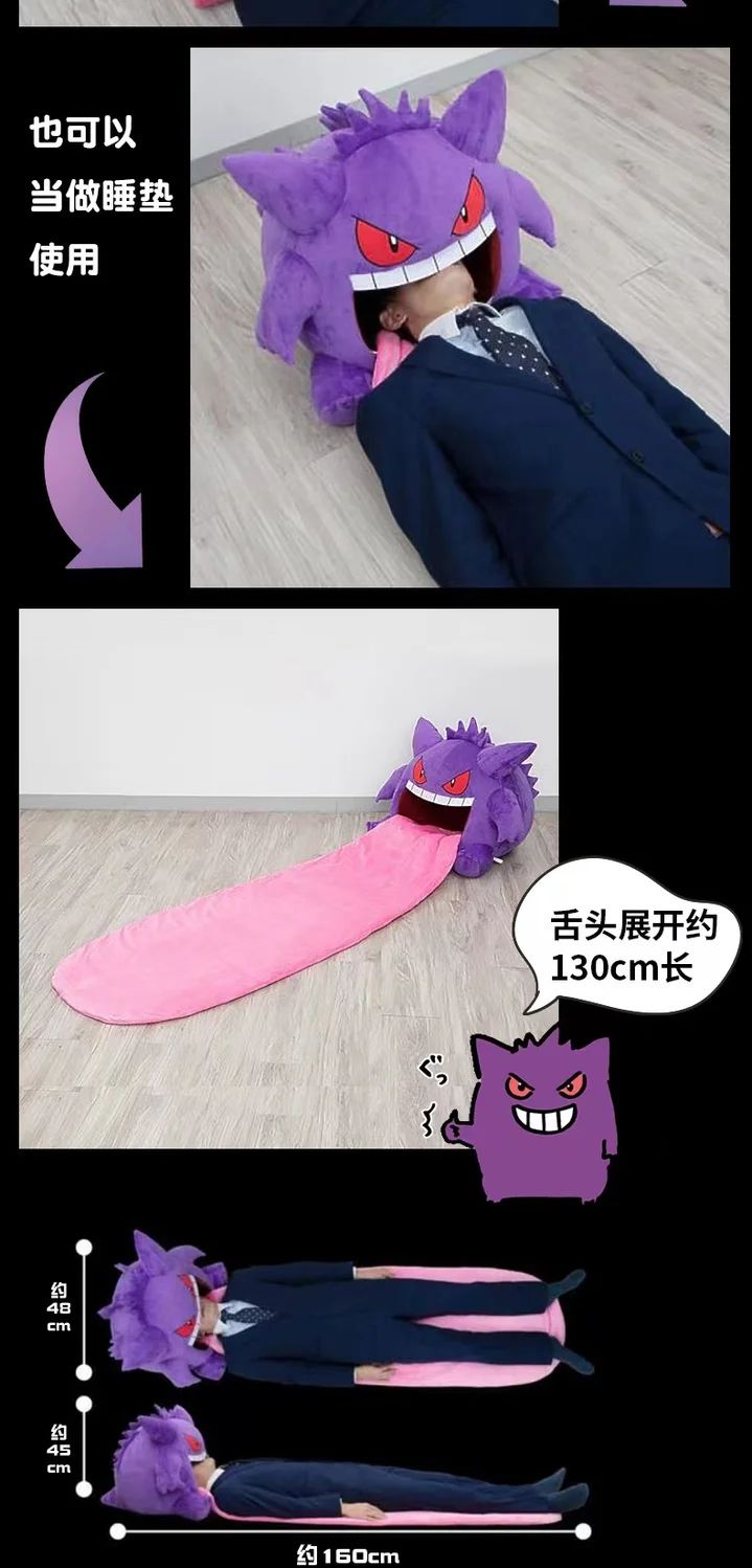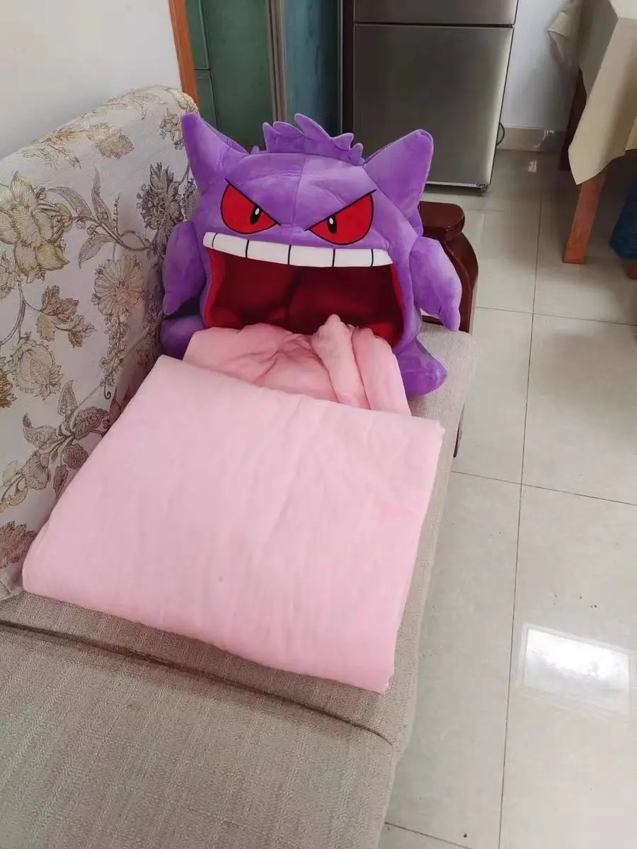 - > Novo 130cm pokemon gengar língua grande bonito anime periférico tamanho grande gengar travesseiro de sono dupla finalidade cobertor nap adulto presente natal