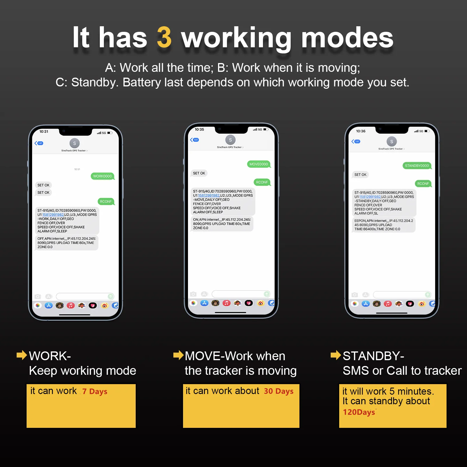 3.STANDBY-SMS ou chamada para rastreador, funcionará por 5 minutos (120 dias)