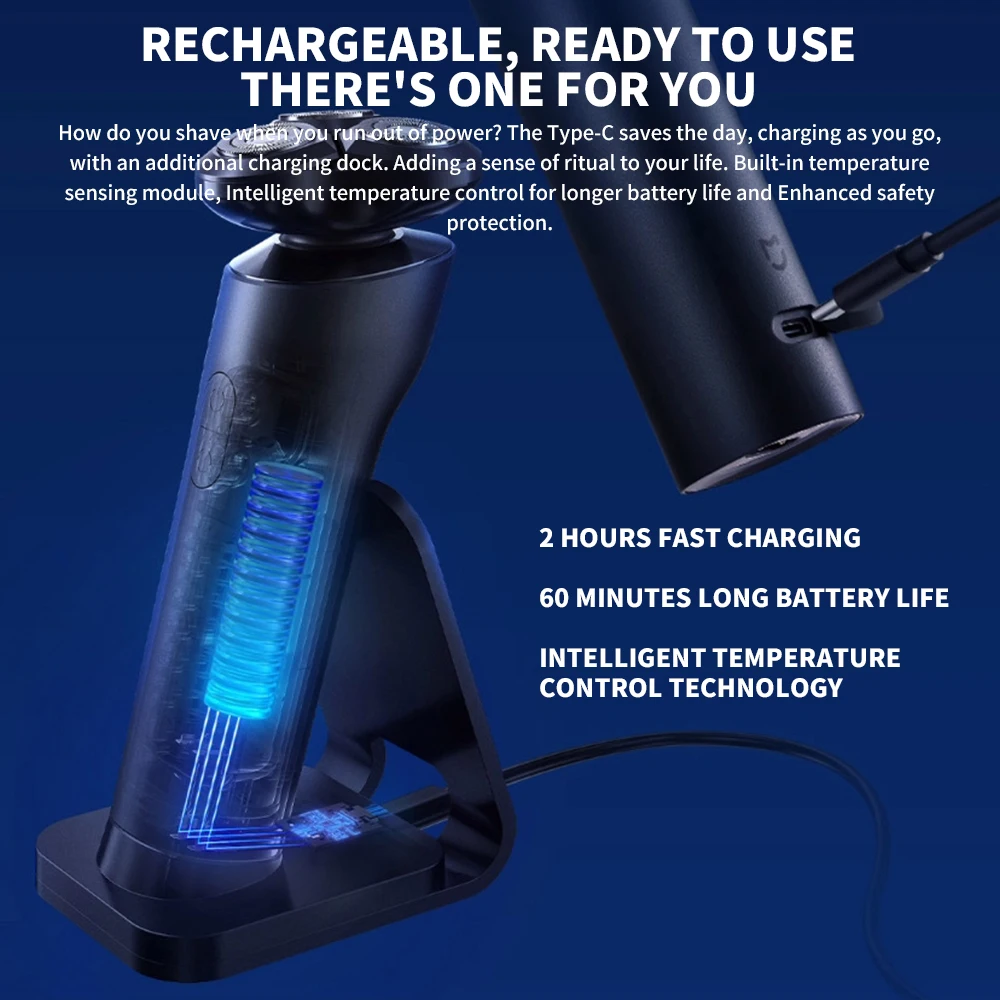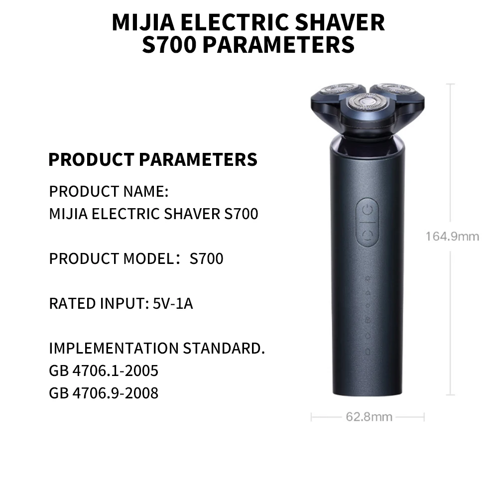 Novo Aparelho de Barbear Elétrico MIJIA S700, Barbeador Portátil Flexível com 3 Cabeças, IPX7 à Prova d'Água, Lavável, Cortador de Barba, 30 dias