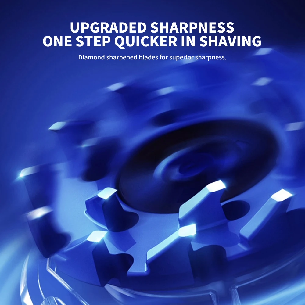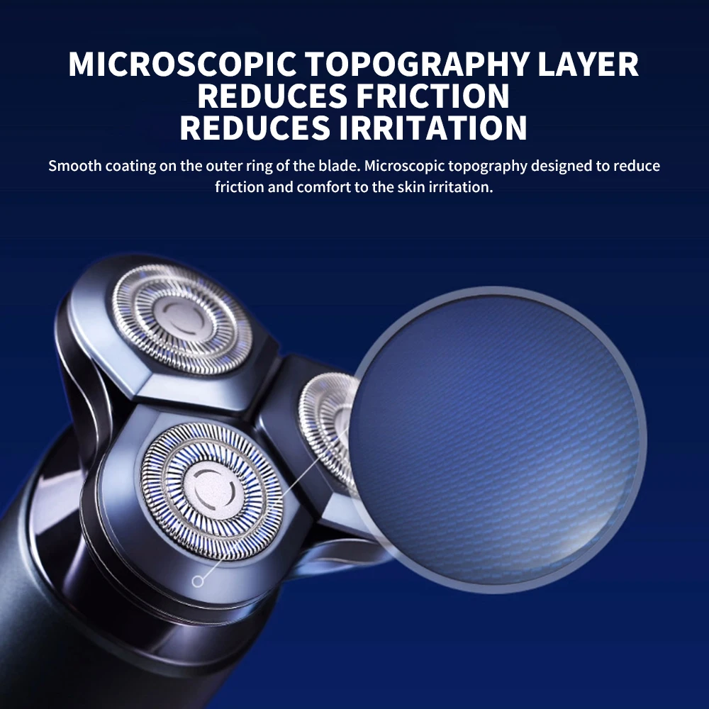 Tecnologia flutuante omnidirecional inovadora para uma descompressão confortável, proporcionando um barbear sem áreas não alcançadas.
