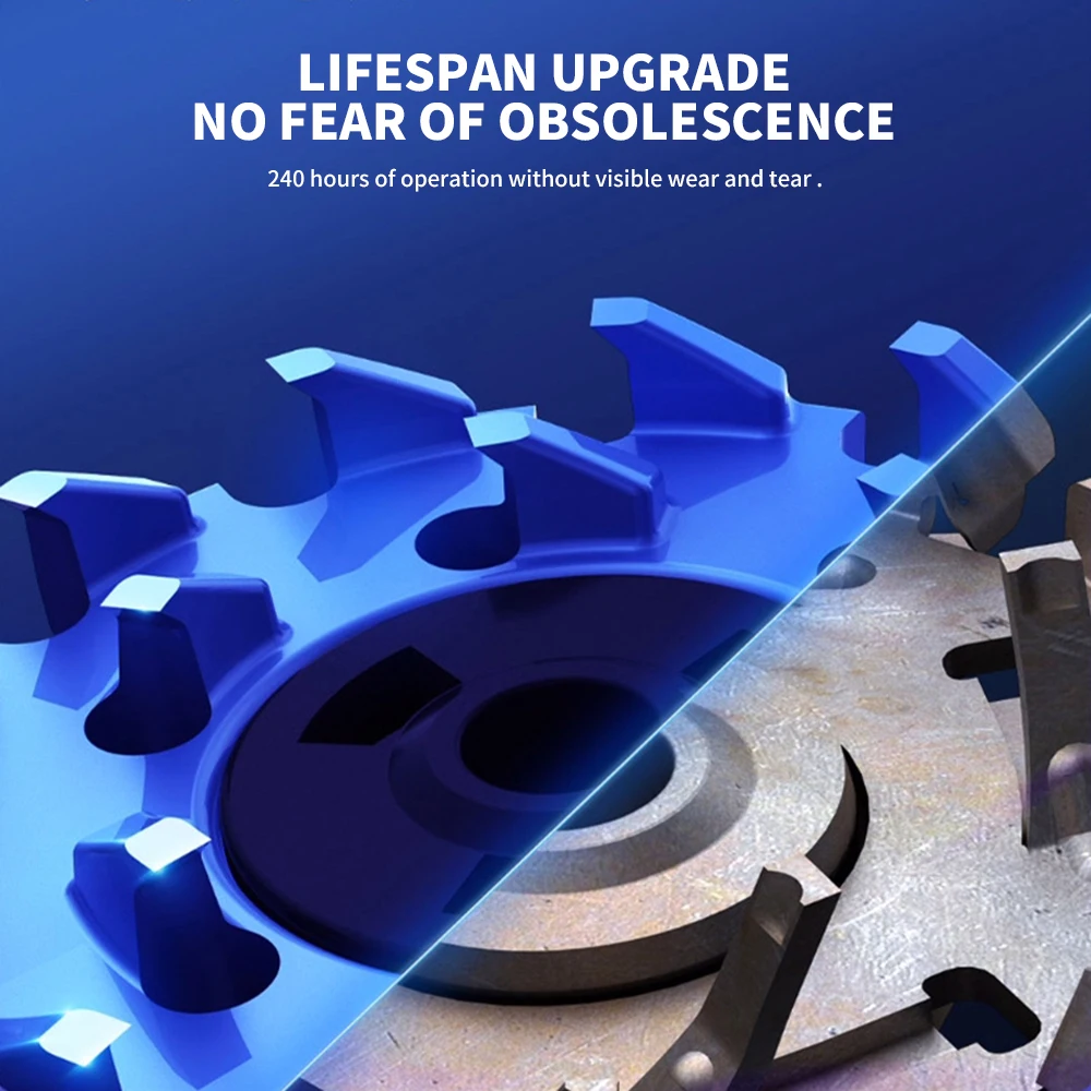 O anel externo da cabeça de corte é revestido com uma camada lisa e microtopológica.
