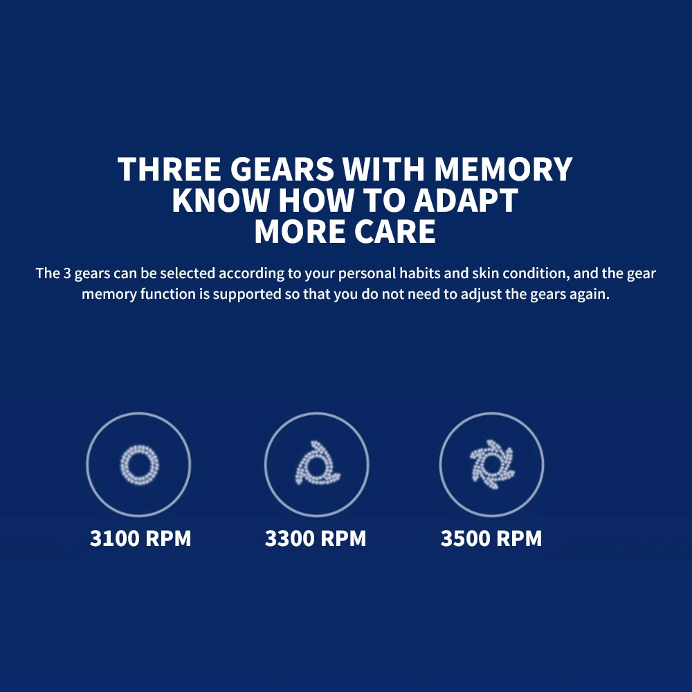 É equipado com um motor de alto torque de 4,4 mN-m, para evitar travamentos e que a barba seja puxada.