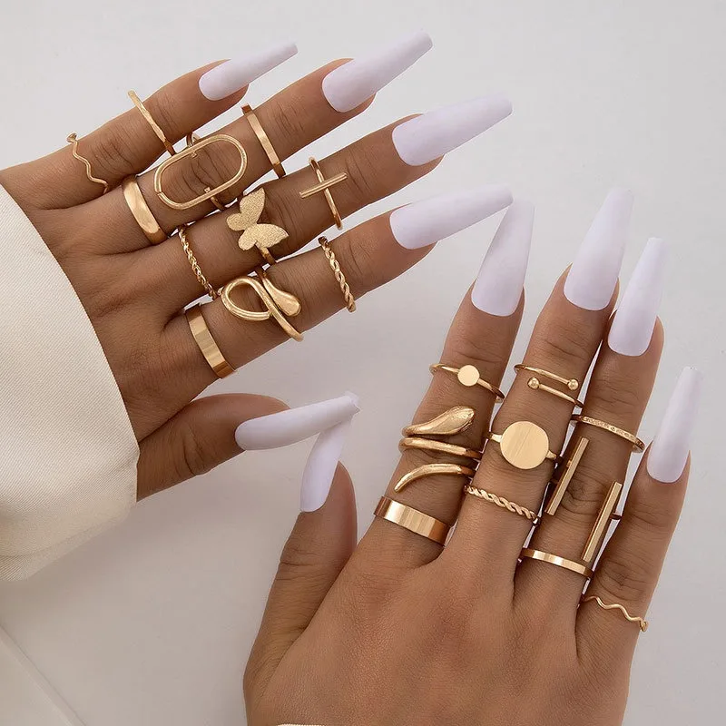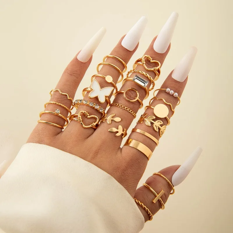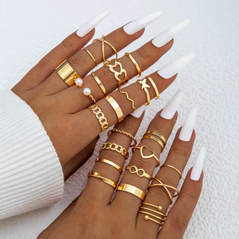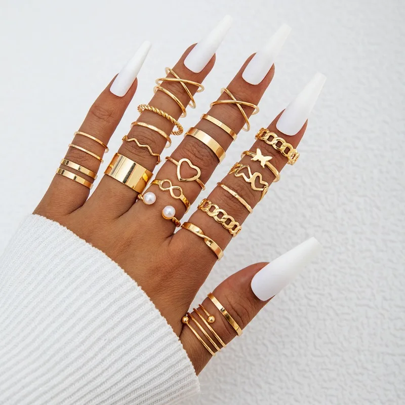 Conjunto de Anéis Empilháveis Borboleta, Figura 8, Coração Aberto, Pérola Sintética, Design Minimalista, Joias Femininas para Misturar e Combinar, Mais Vendido