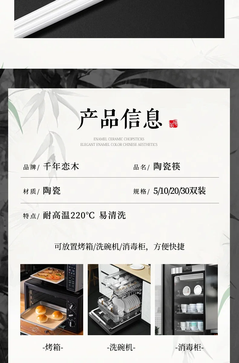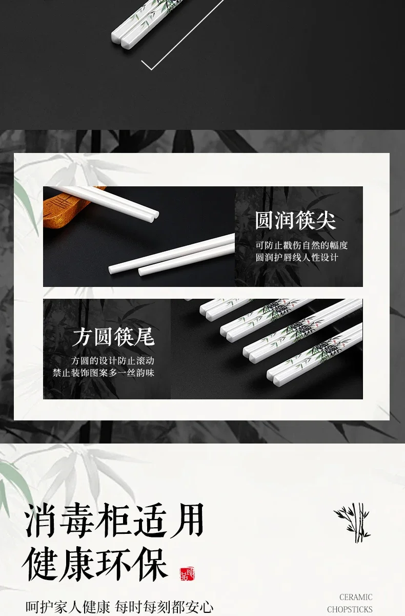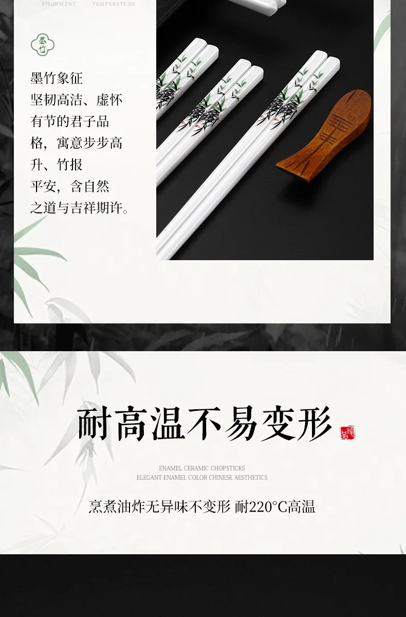 Novo conjunto de pauzinhos de cerâmica conjunto de pauzinhos chineses elegante casa à prova de gota antiderrapante porcelana de qualidade alimentar utensílios de mesa chineses
