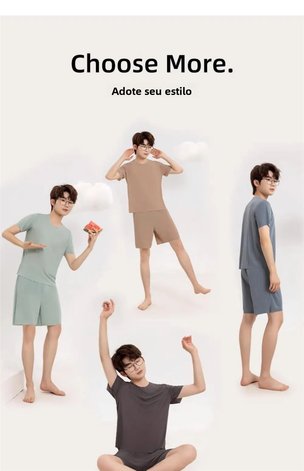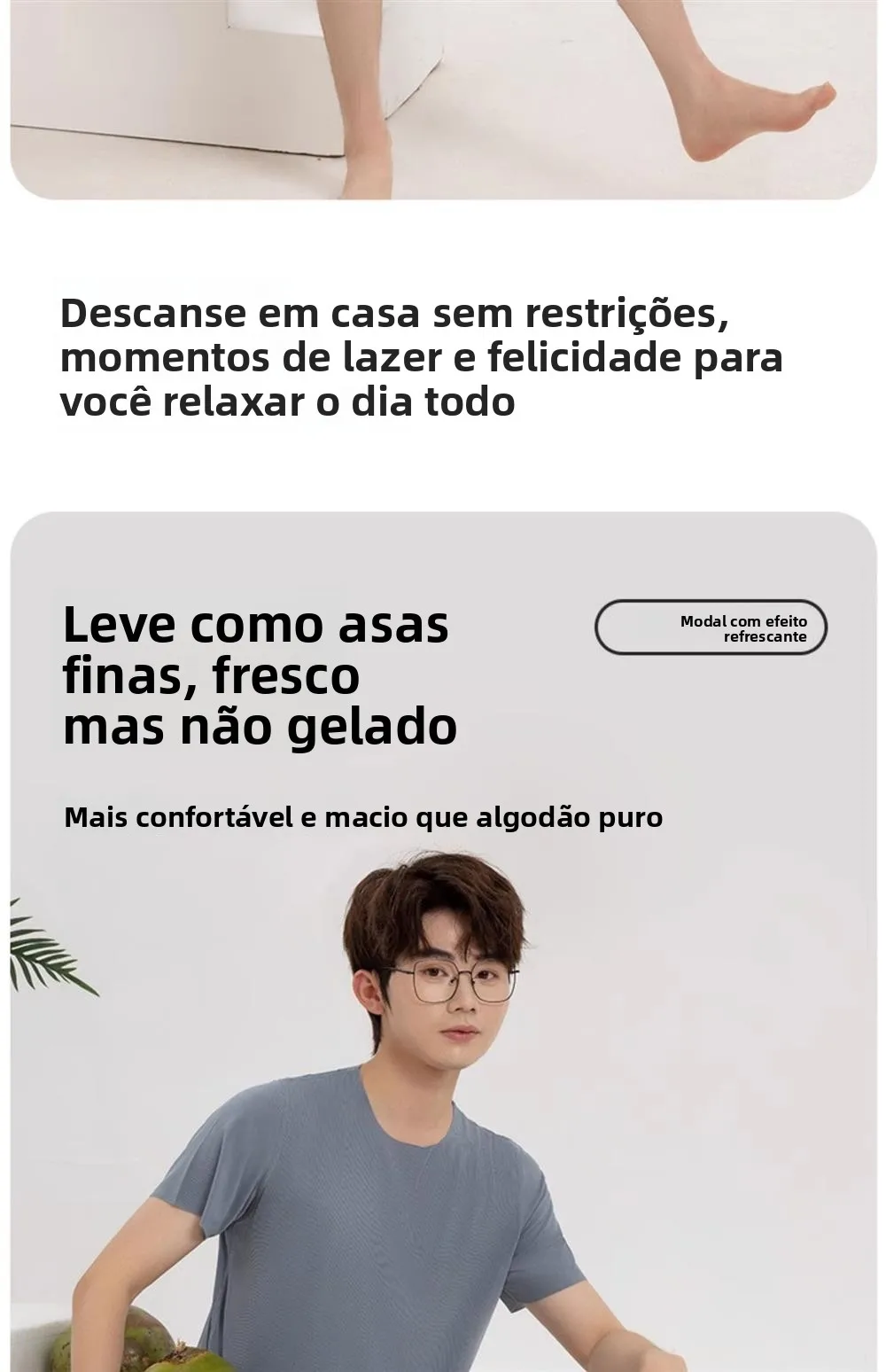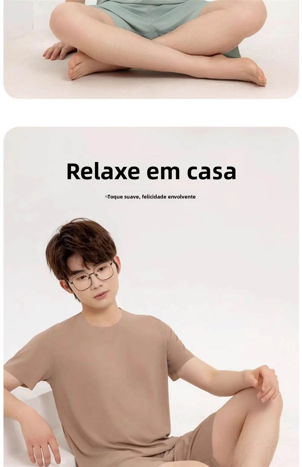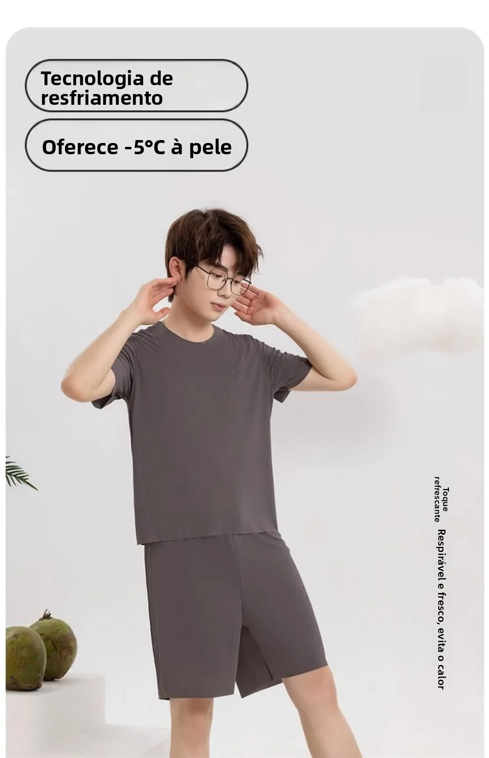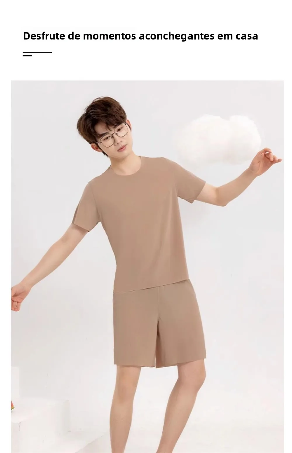 - > Novo Conjunto de Pijama Masculino 2025 de Verão em Modal e Seda Gelada, Fino, Manga Curta e orts, Tamanho ande, Roupa de ...