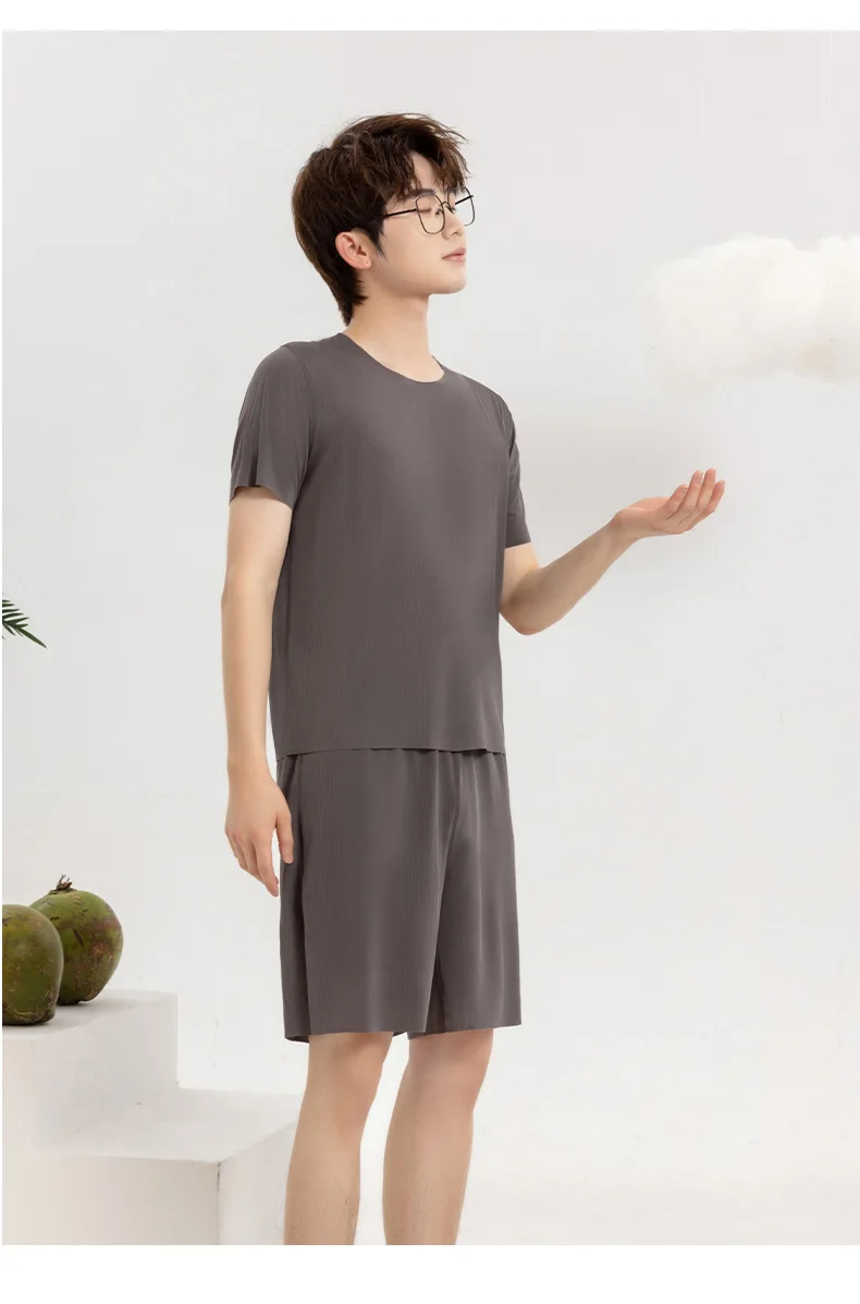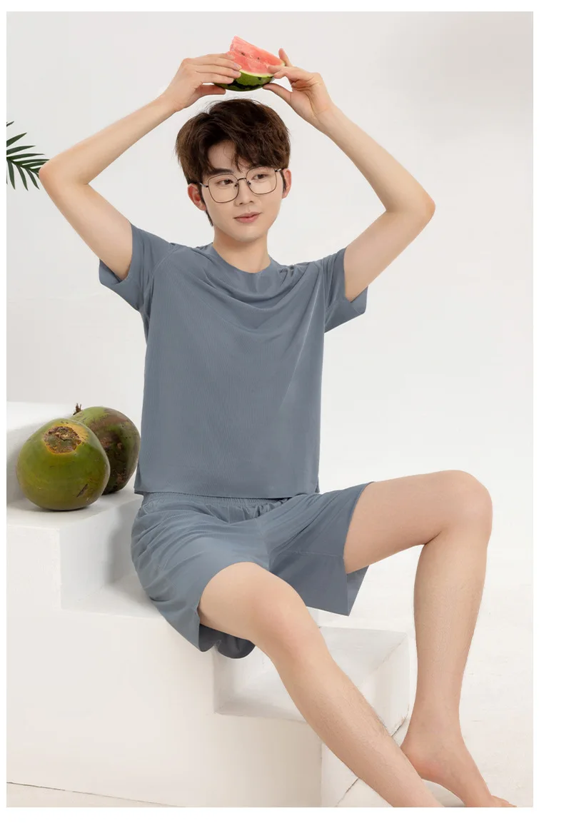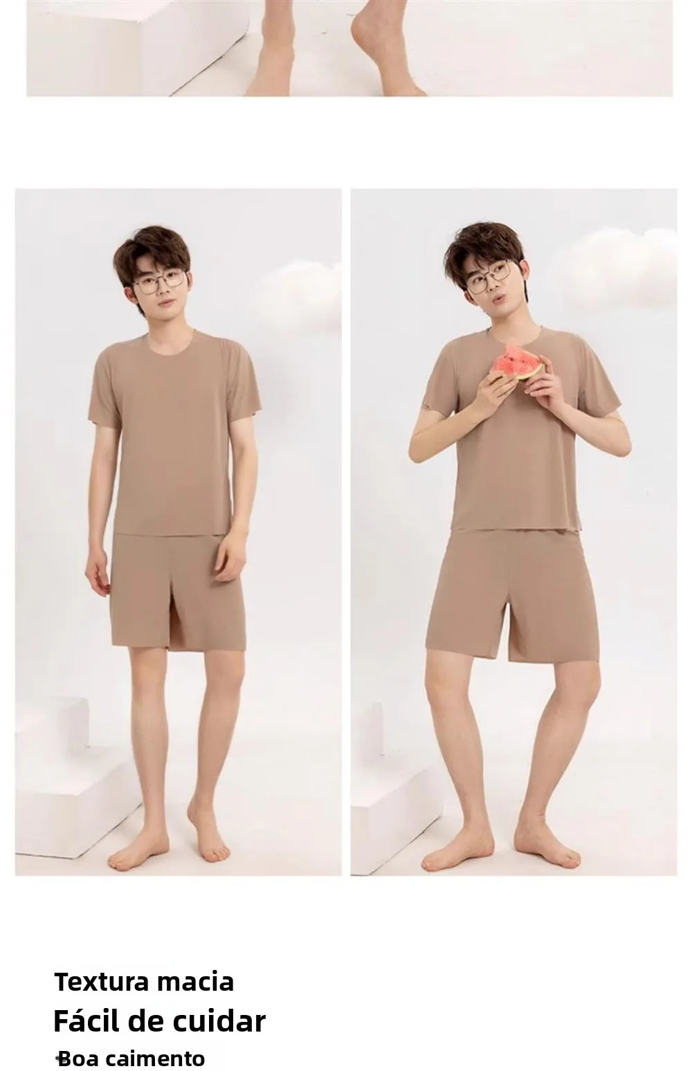 Novo Conjunto de Pijama Masculino 2025 de Verão em Modal e Seda Gelada, Fino, Manga Curta e orts, Tamanho ande, Roupa de ...