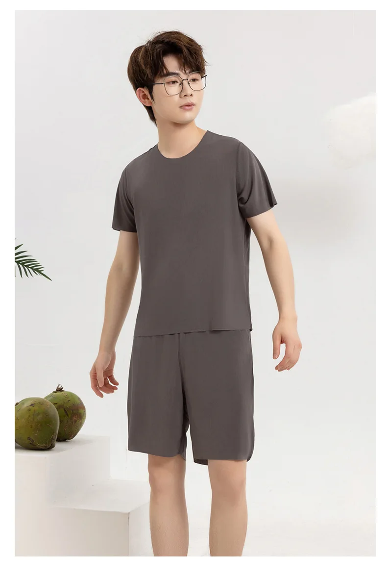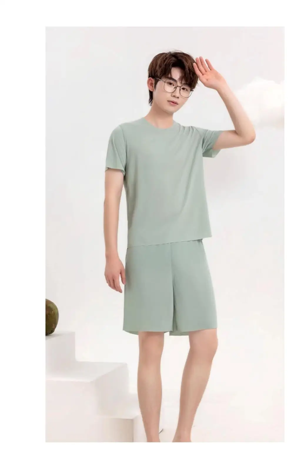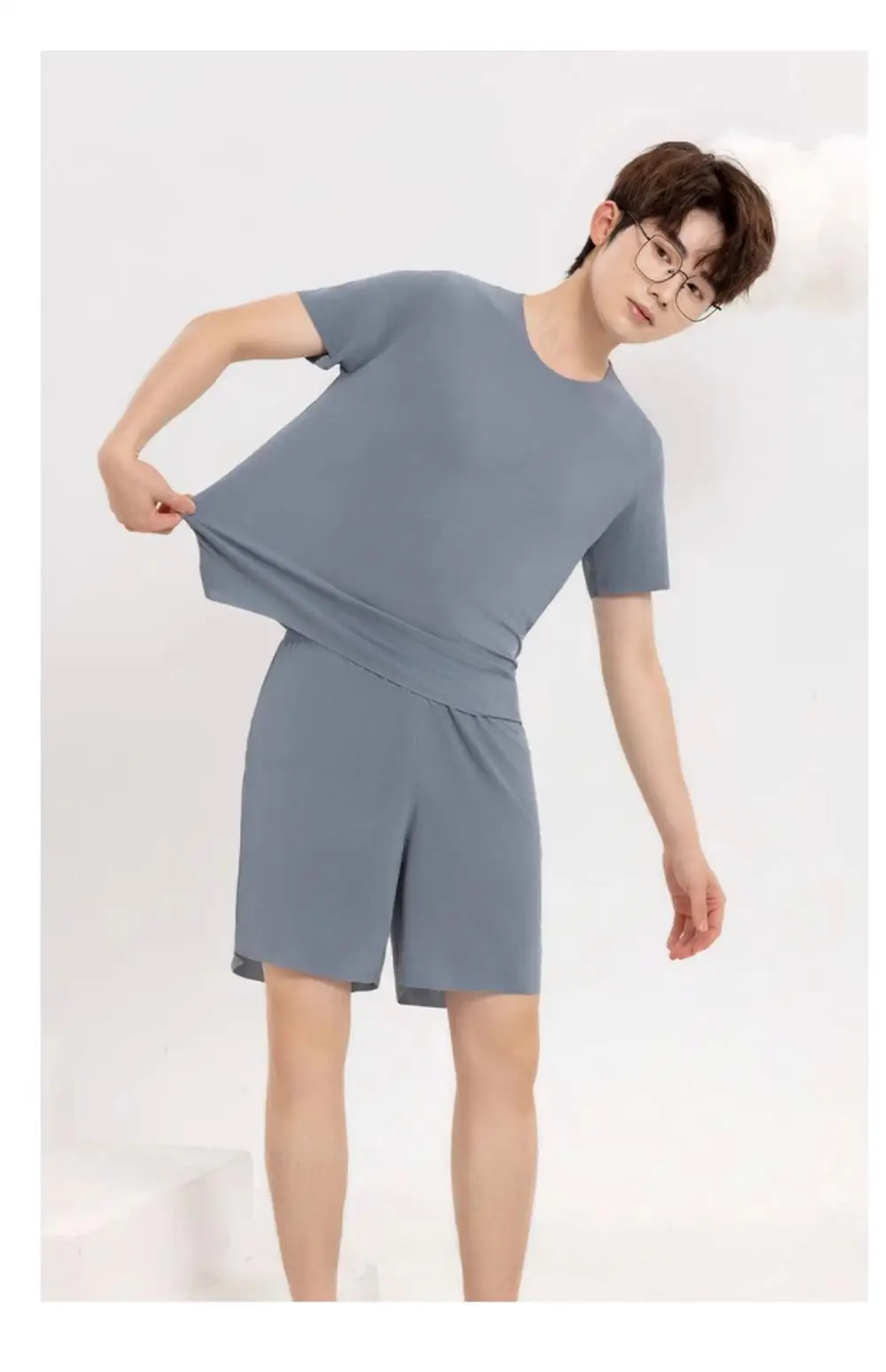 Novo Conjunto de Pijama Masculino 2025 de Verão em Modal e Seda Gelada, Fino, Manga Curta e orts, Tamanho ande, Roupa de ...