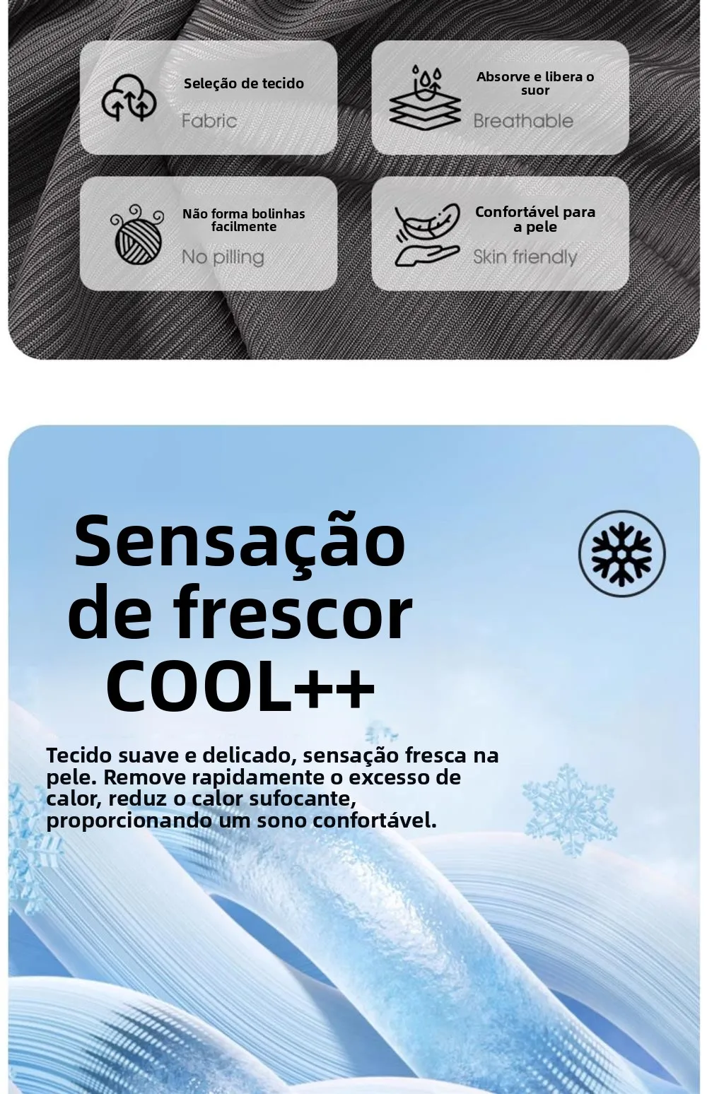 O material de alta qualidade proporciona uma sensação de frio, tornando-o ideal para uso durante os meses mais quentes.