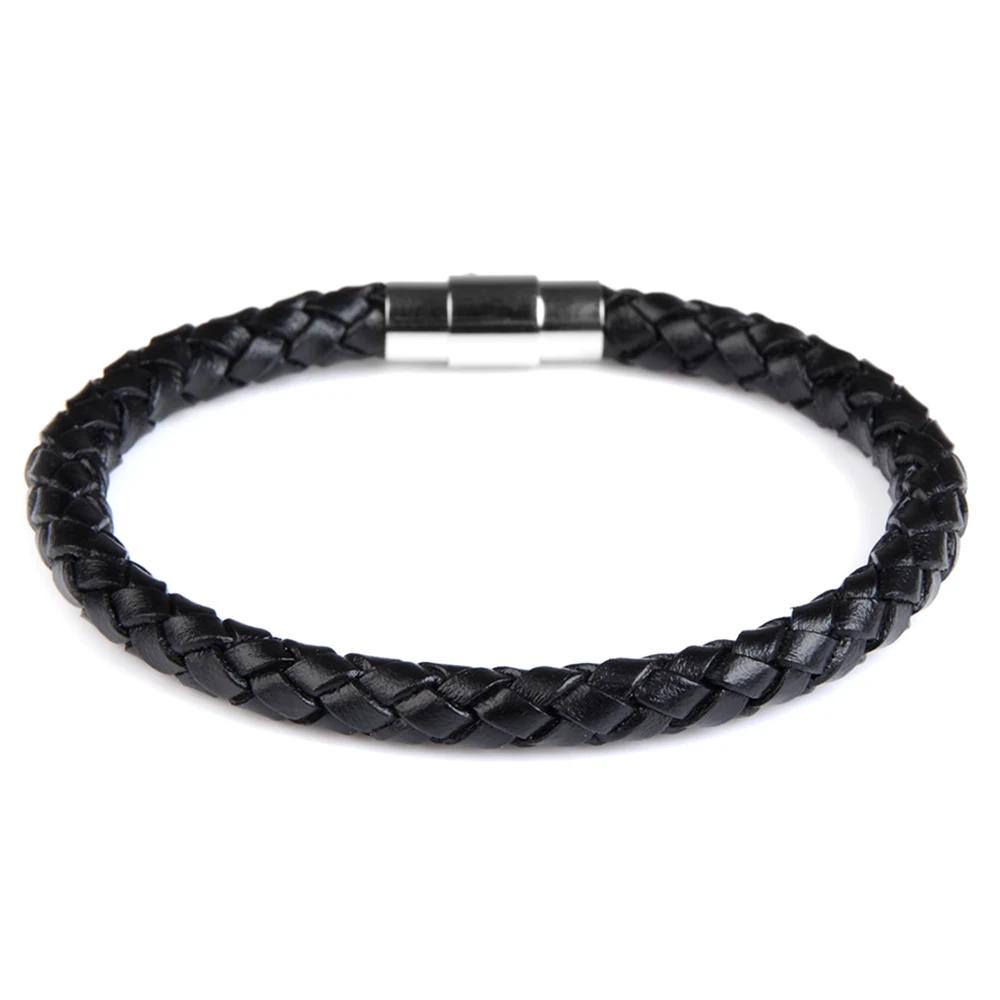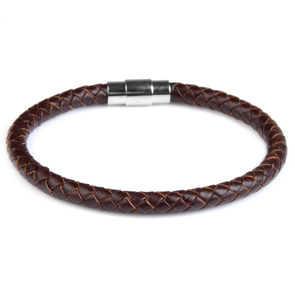 Nome:Nova pulseira trançada de couro genuíno para homens marrom preto fecho de aço inoxidável artesanal masculino jóias presente vendas quentes