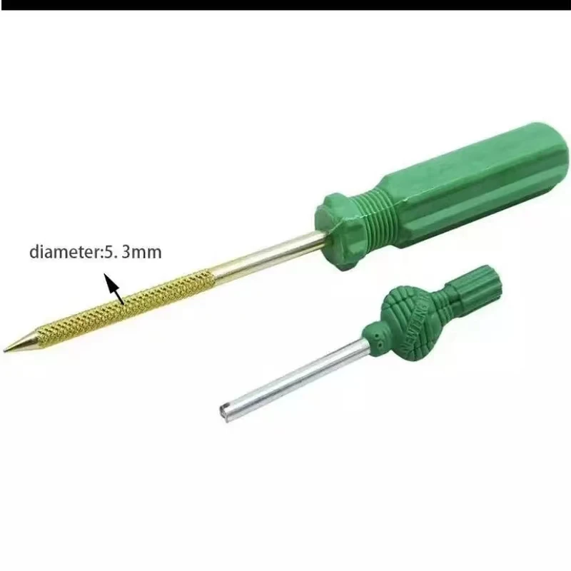 Esta ferramenta de reparo de pneus de carro pode reparar de maneira fácil e rápida todos os pneus sem câmara na maioria dos veículos.