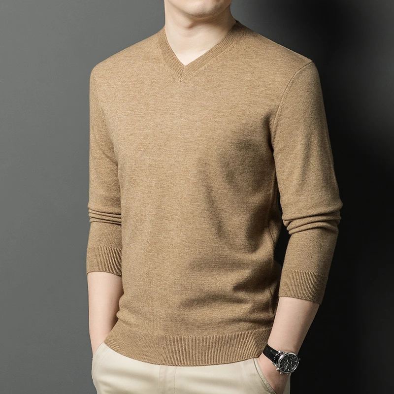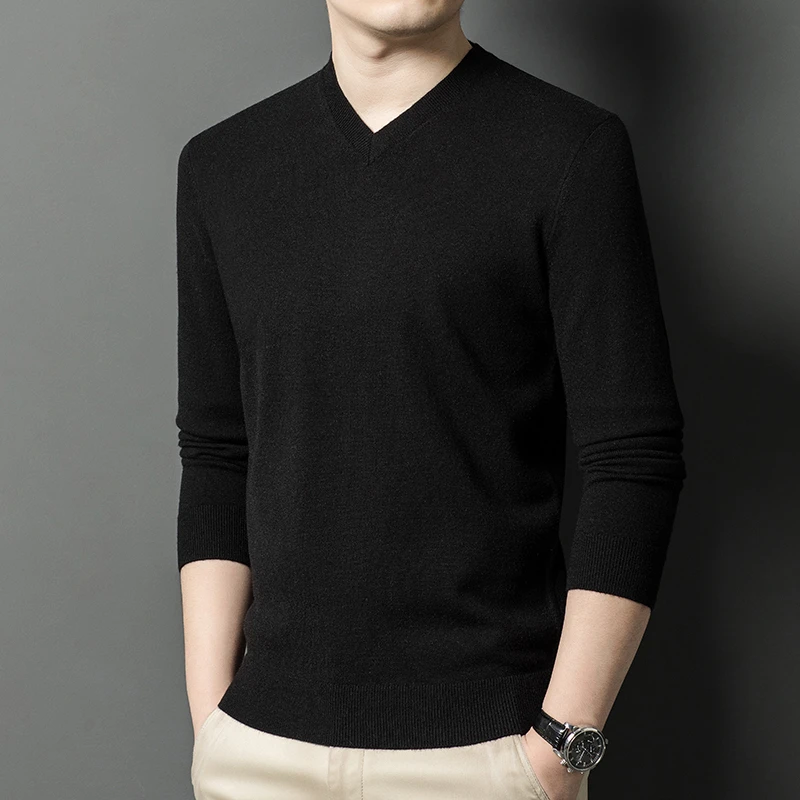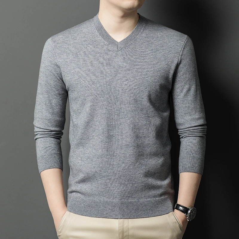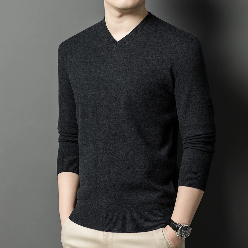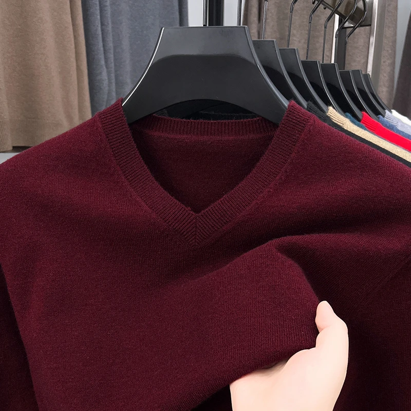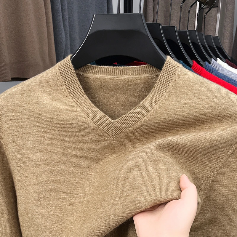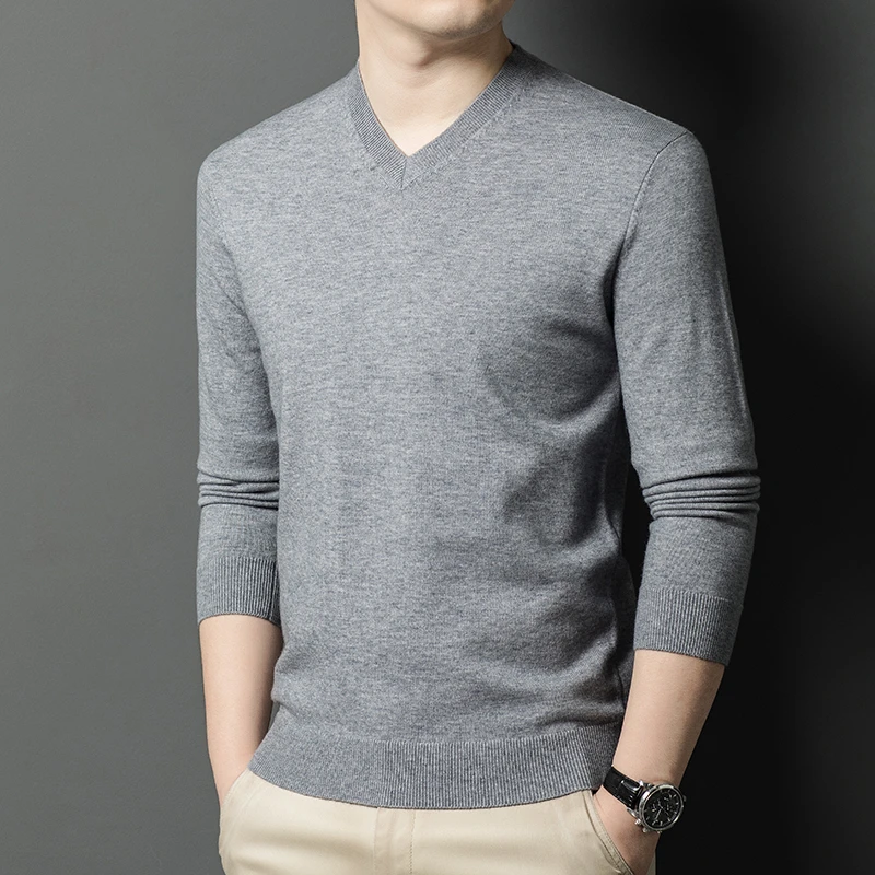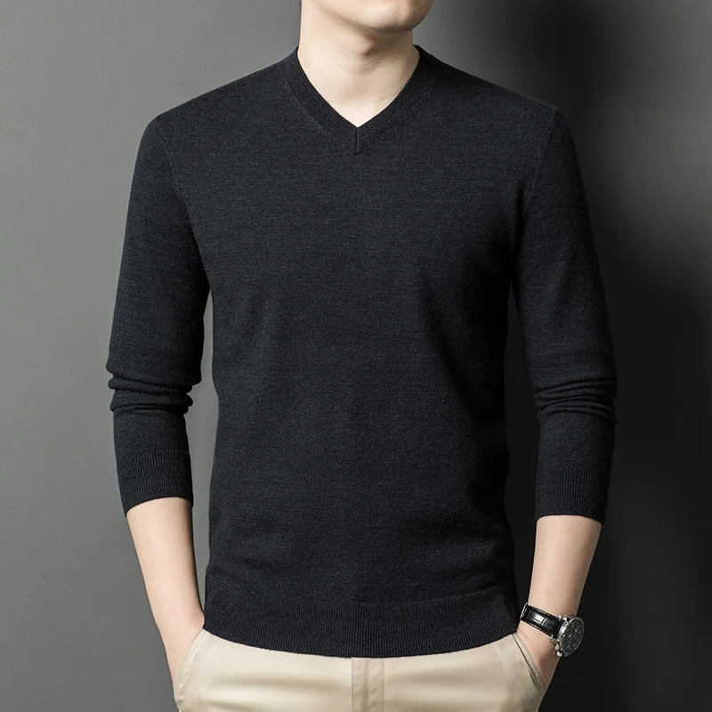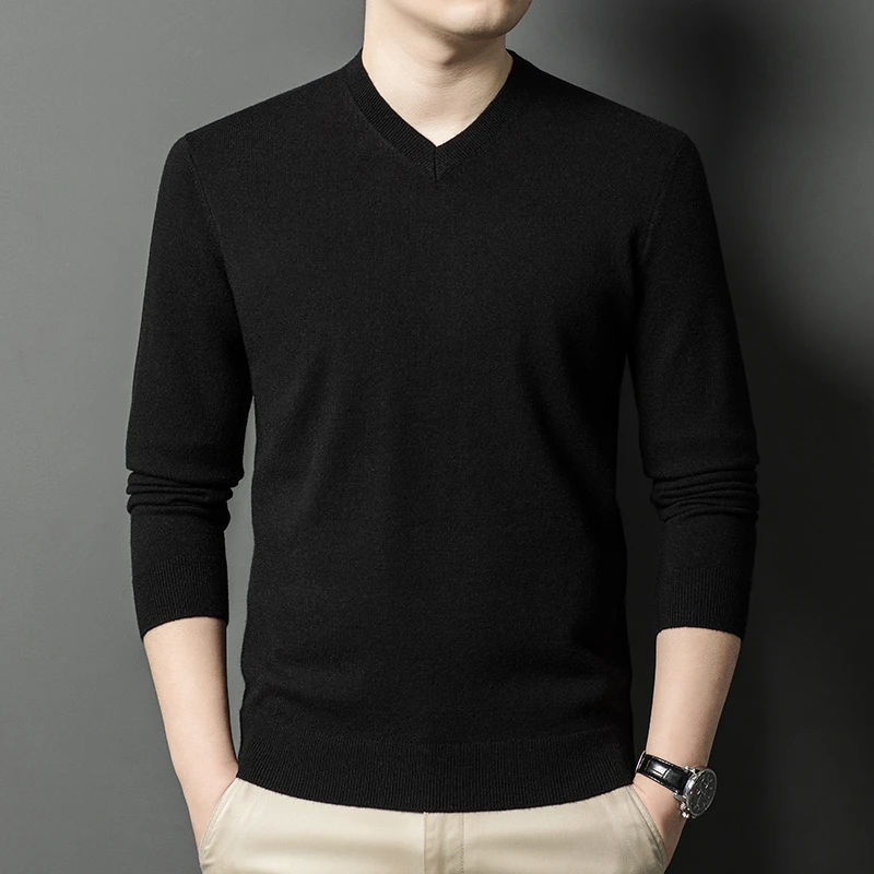 - > Novo moletom masculino com decote em v básico cor sólida suéteres em torno do pescoço pullovers elásticos quente outono malha camisola de grandes dimensões