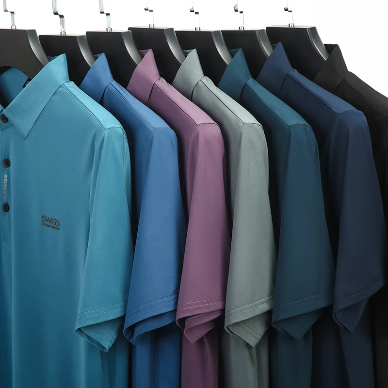 Novo negócio masculino casual camisa de manga curta com emblema cor sólida camisa polo moda respirável confortável versátil topo