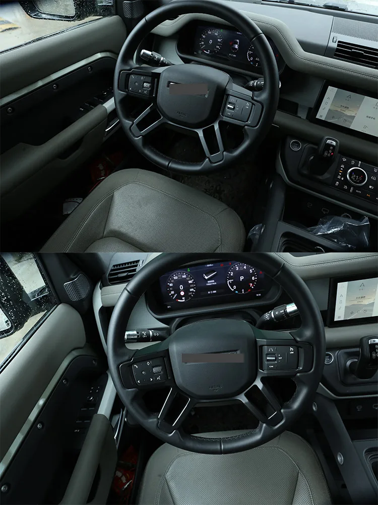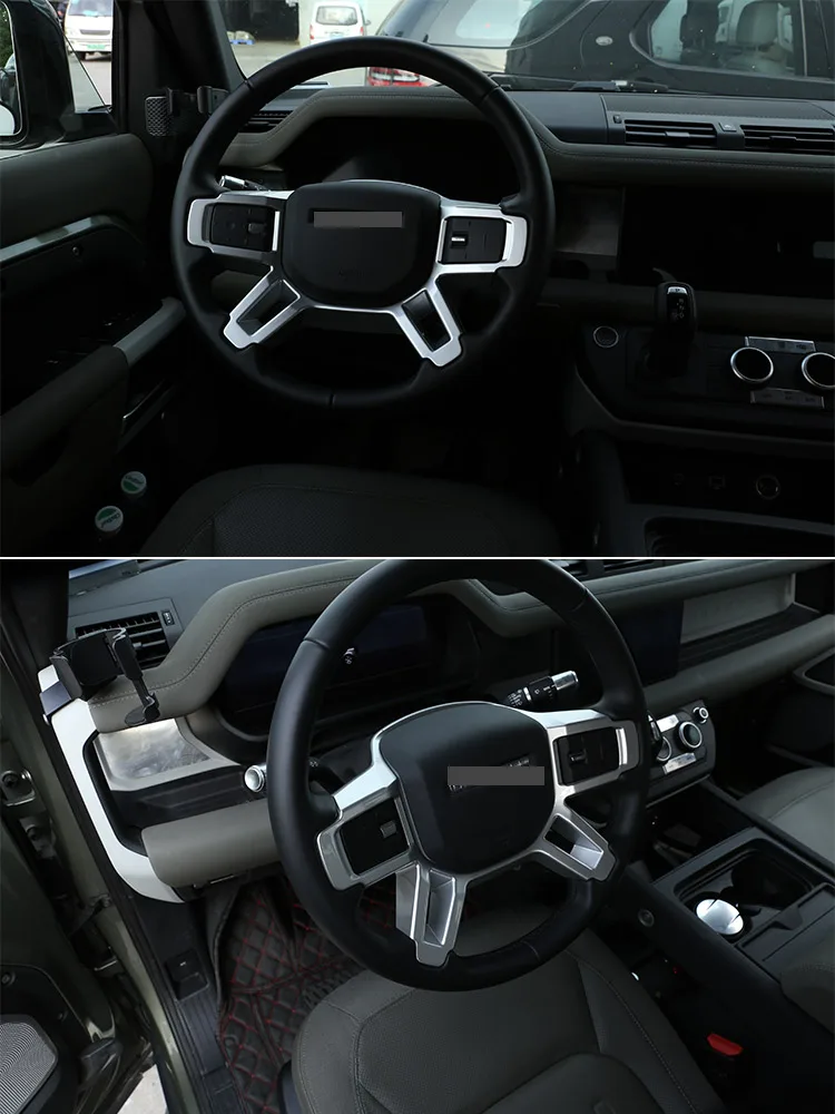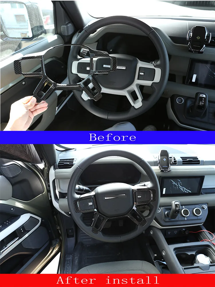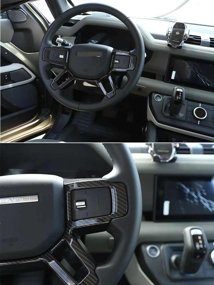 - > Novo! ! ! Para land rover defender 90 110 2020-2024 abs fibra de carbono interior volante do carro adesivo decorativo acessório do carro