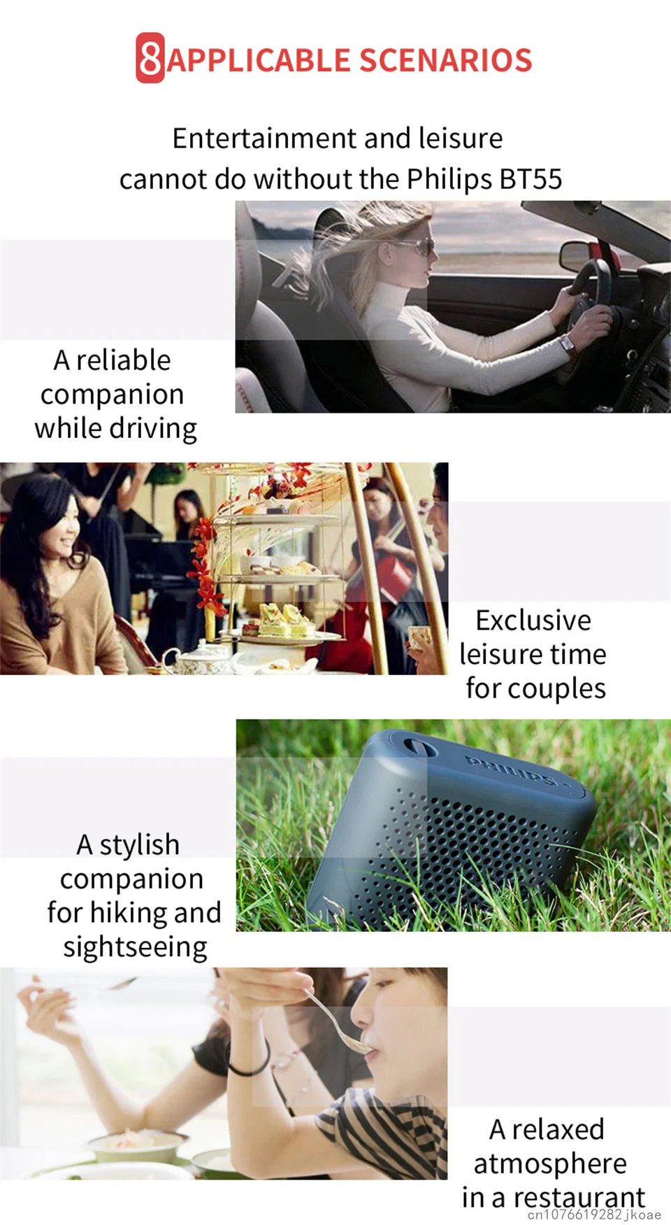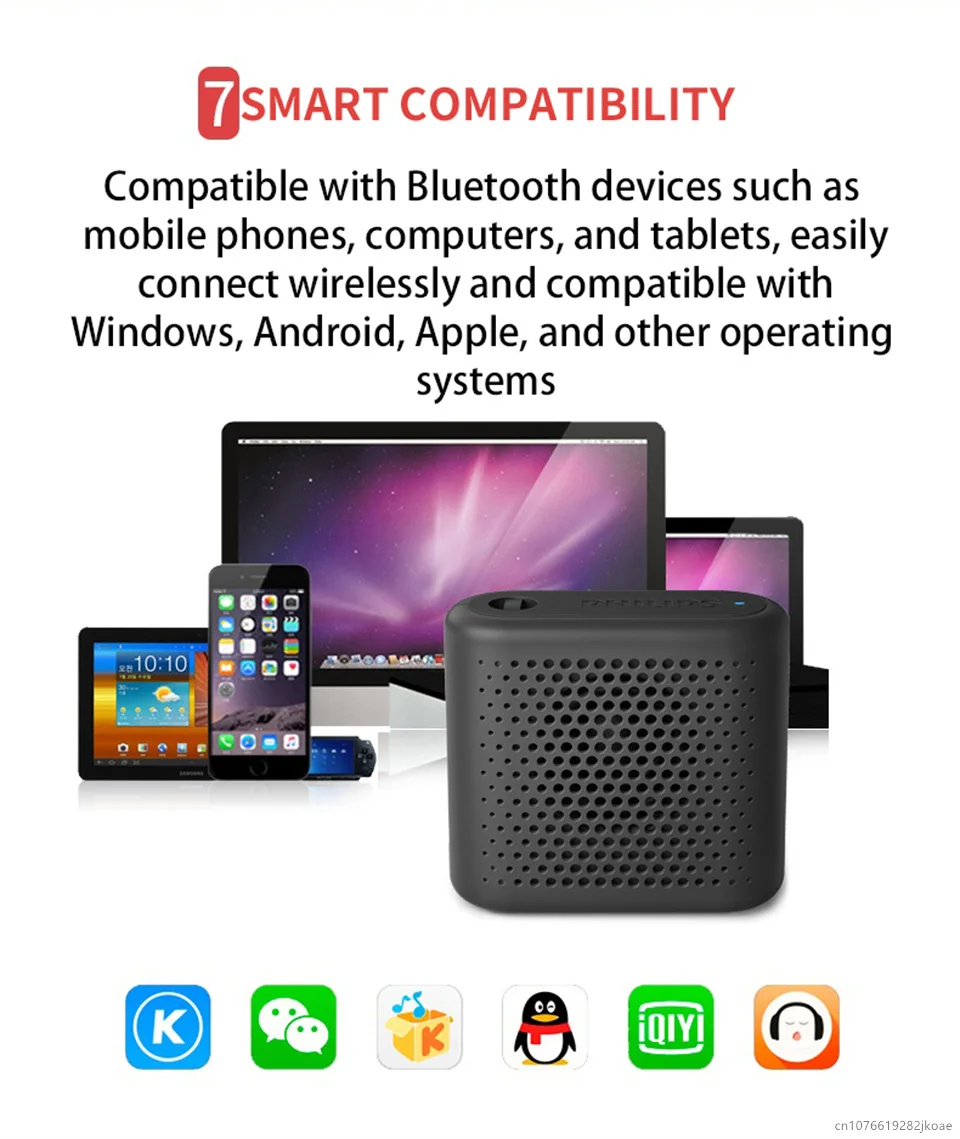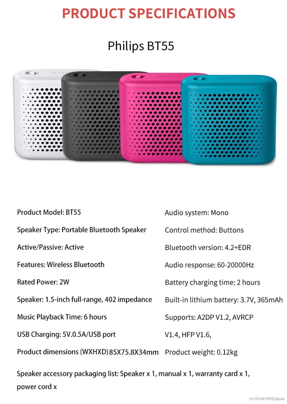 - > Novo philips bt55 alto-falantes bluetooth interno portátil sem fio mini caixa de alto-falante estéreo alta fidelidade som subwoofer festa leitor música