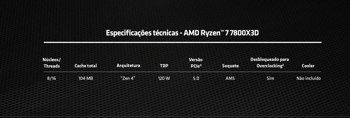 - > Novo processador amd ryzen 7 7800x3d 4.2ghz l3 = 96m 120w 8 núcleos 16 threads r7 7800x3d soquete am5 5nm ddr5 mas sem ventilador