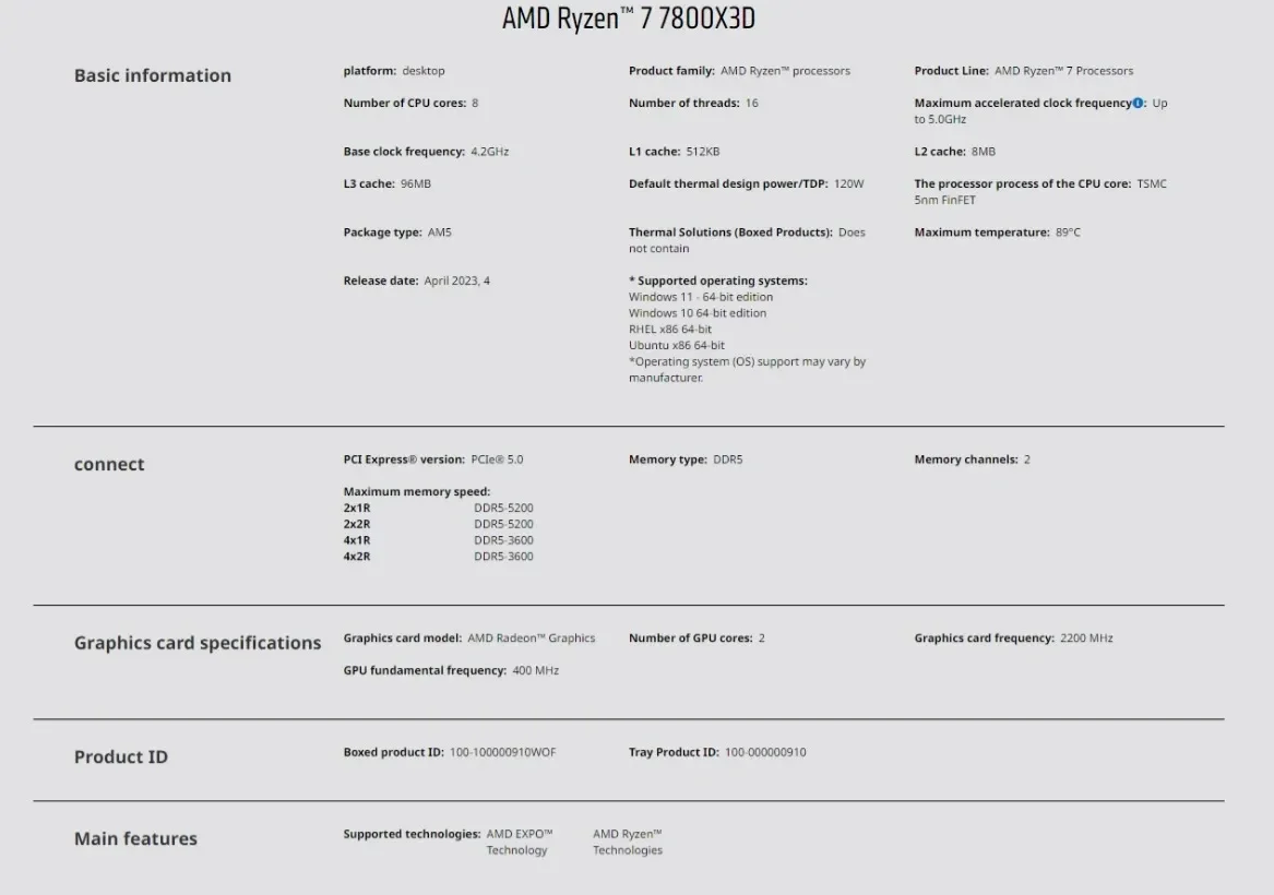 Modelo AMD: AMD 7 Ryzen 7800X3D