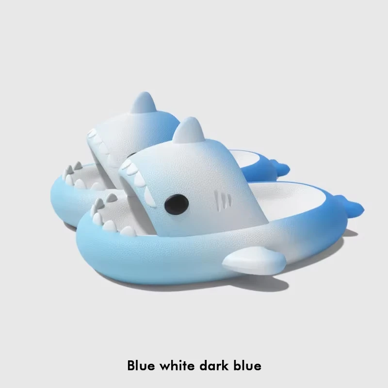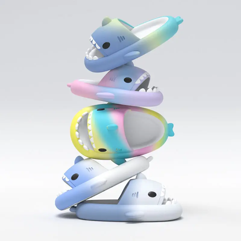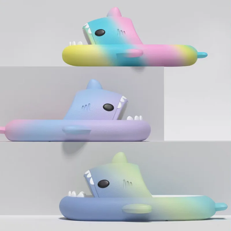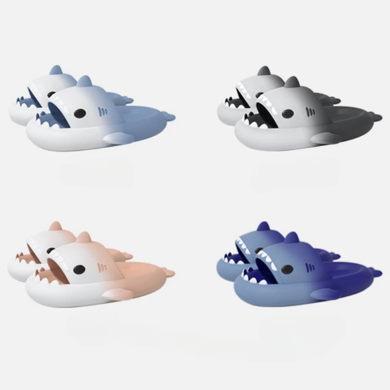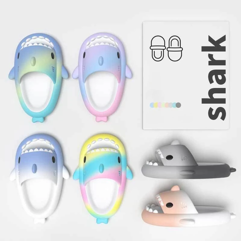 - > Novos chinelos de tubarão para mulheres cor gradiente sandálias bonitos sandálias de rua interior homens praia chuveiro slides de sola grossa eva flip flop