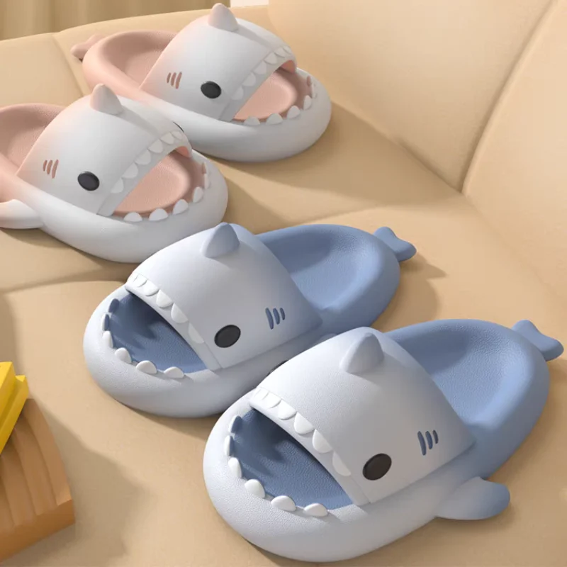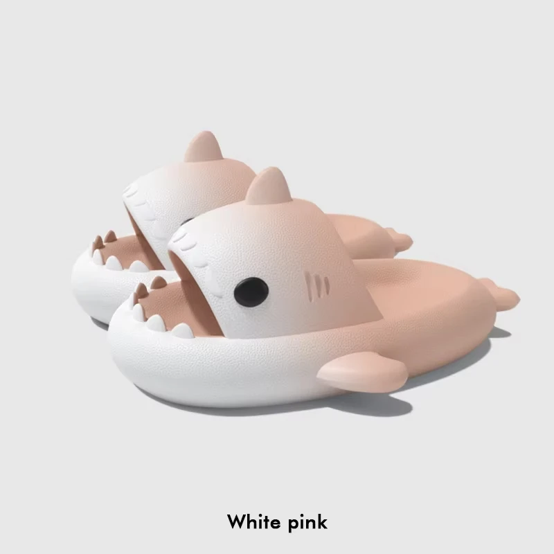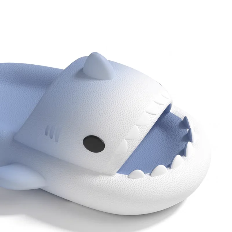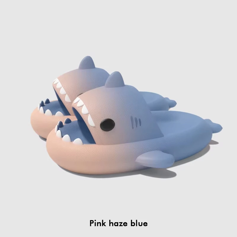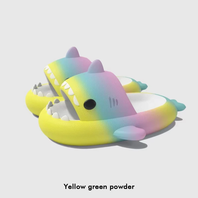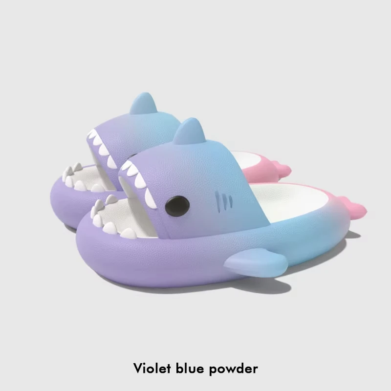 - > Novos chinelos de tubarão para mulheres cor gradiente sandálias bonitos sandálias de rua interior homens praia chuveiro slides de sola grossa eva flip flop