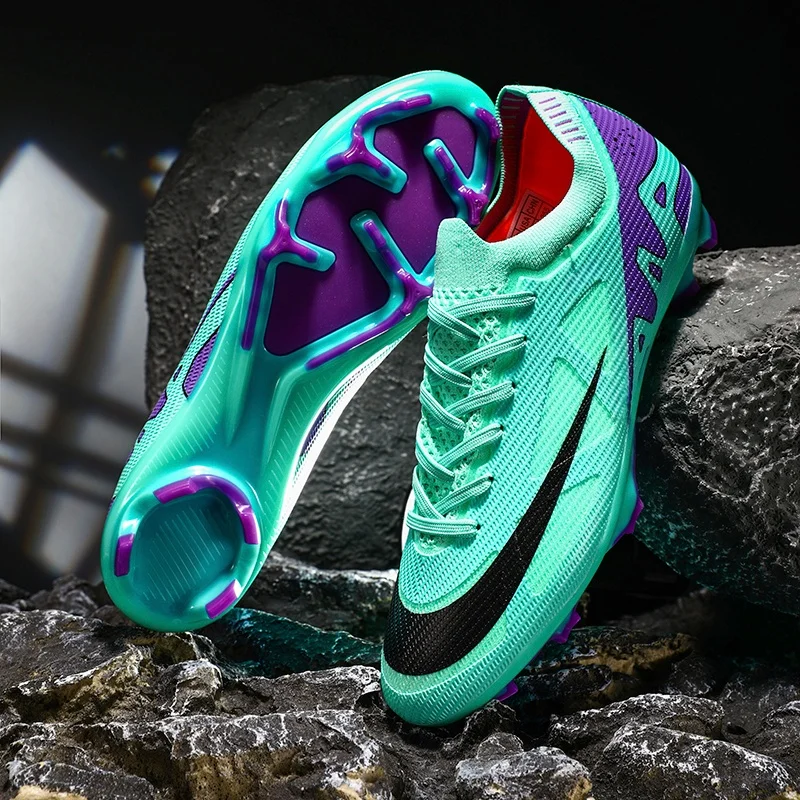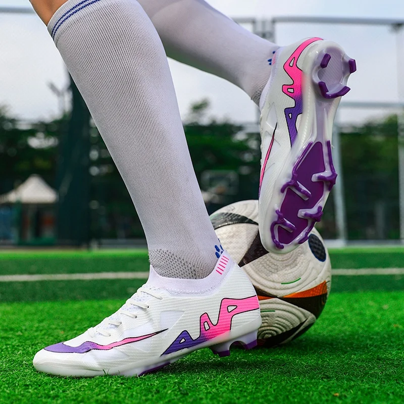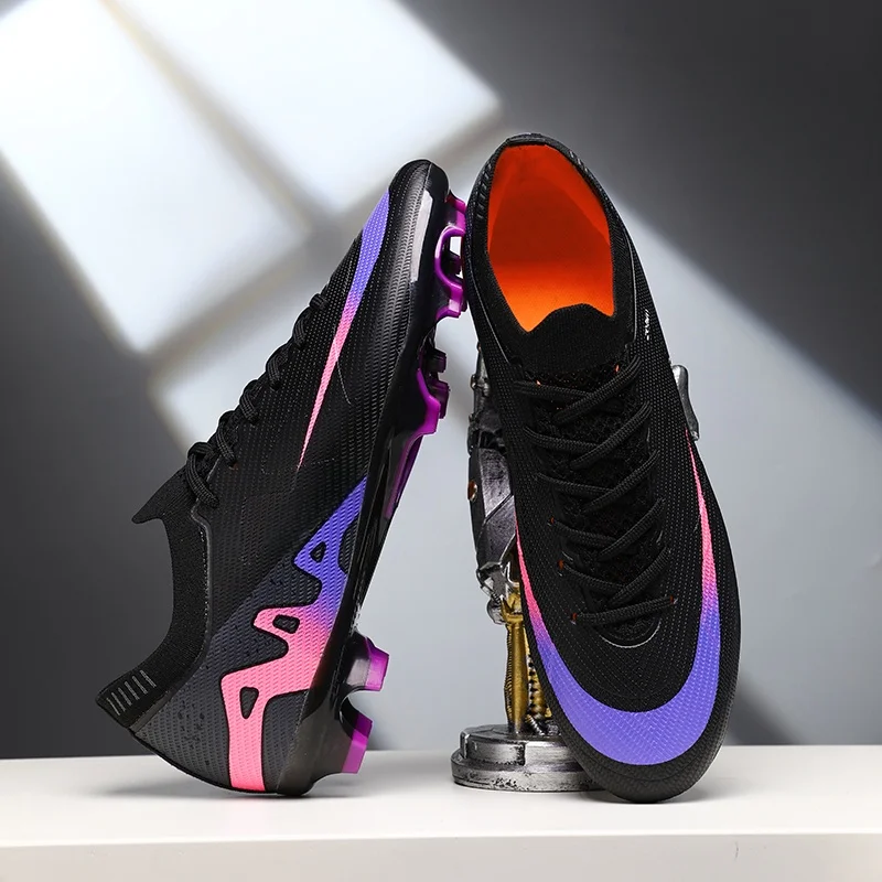 - > Novos homens botas de futebol jogo indoor respirável longo picos ultraleve grama chuteiras sapatos tênis treinamento transporte da gota