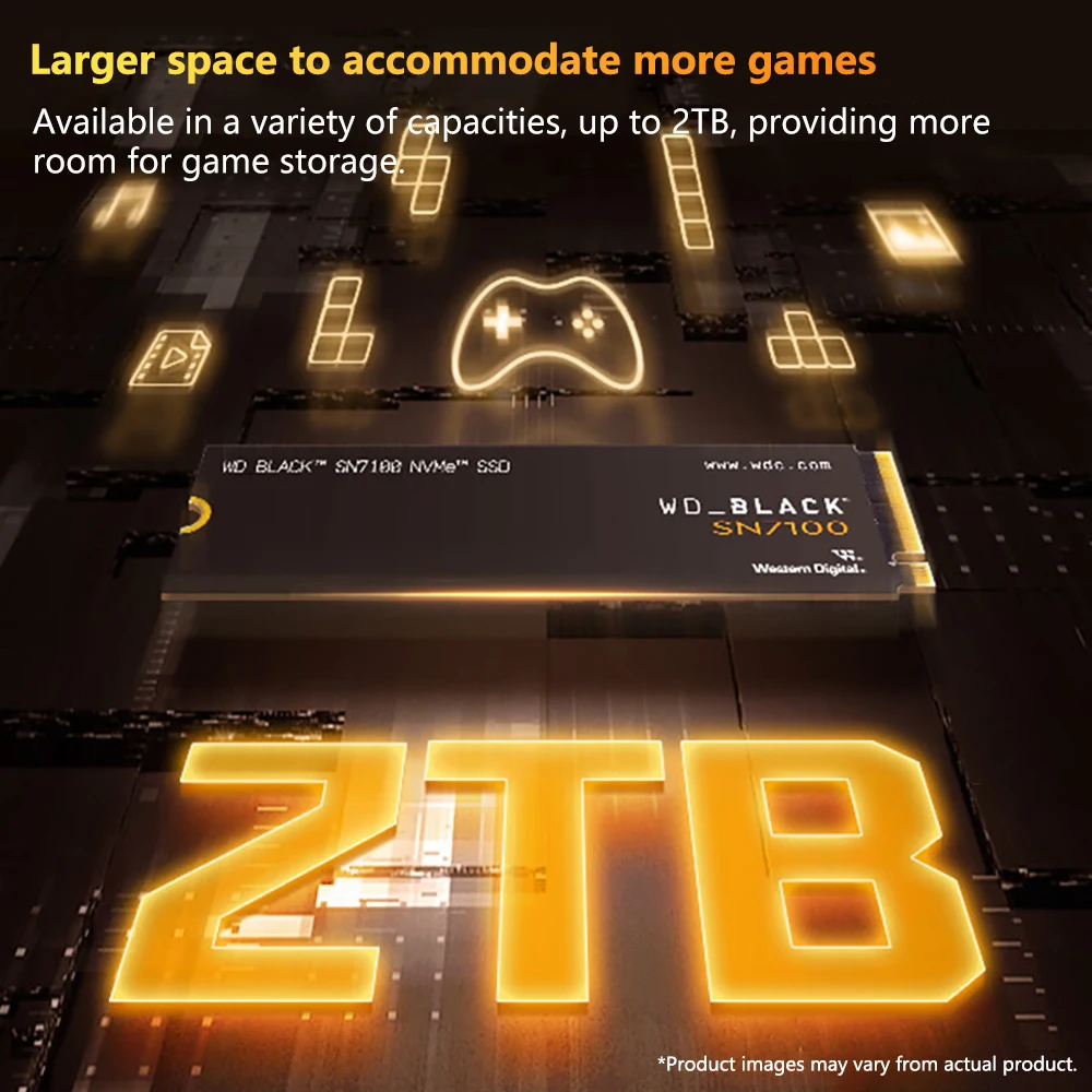 Disponível em múltiplas capacidades de até 2 TB, 1 o WD_BLACK SN7100 NVMe™ O SSD oferece muito espaço de armazenamento para seus jogos mais recentes com espaço restante para futuras atualizações e conteúdo para download.