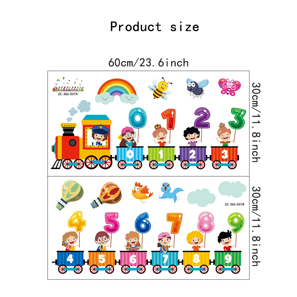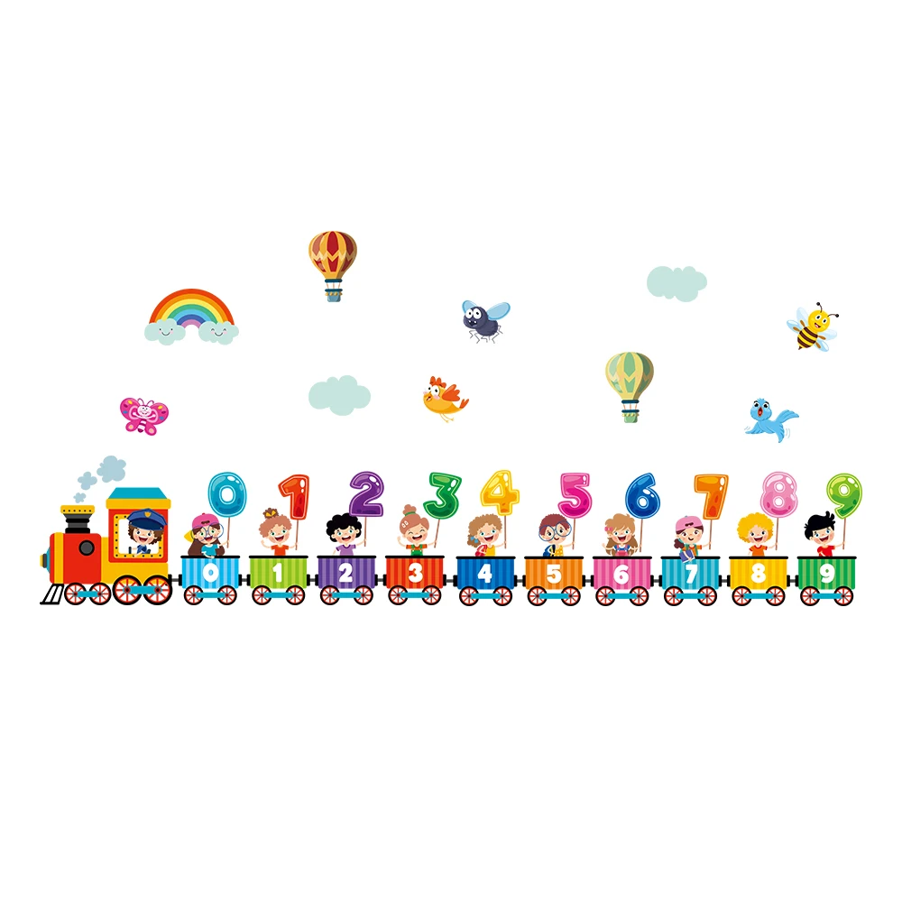 Números coloridos dos desenhos animados trem adesivos de parede para berçário crianças decoração do quarto arte jardim de infância removível decalques pvc diy cartaz mural