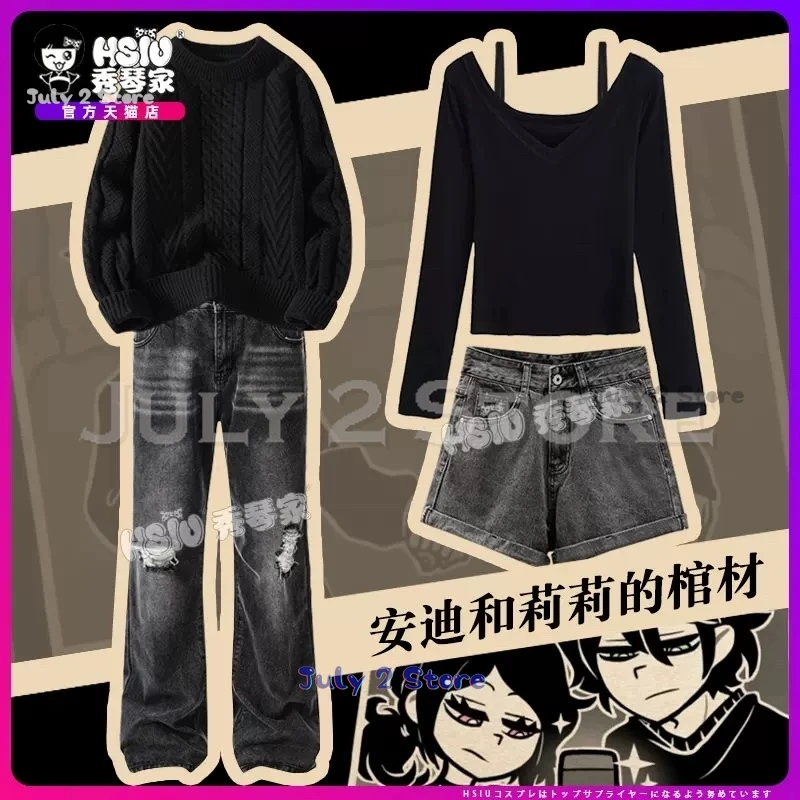 - > O caixão de andy e leyley andrew ashley cosplay traje peruca festa de halloween casal uniforme terno preto calças superiores jogo escuro