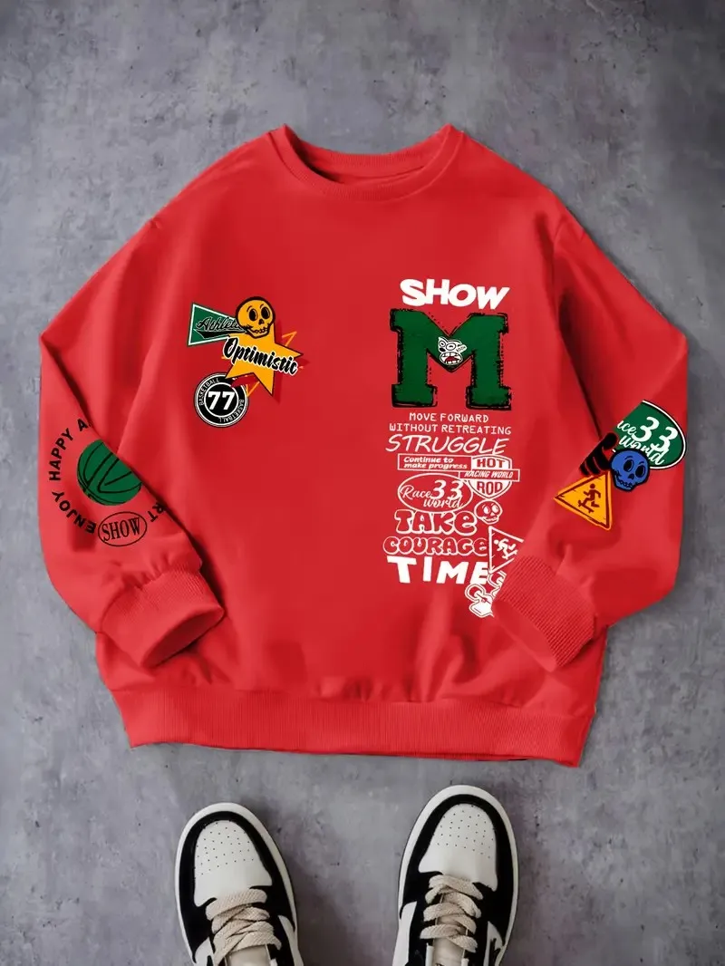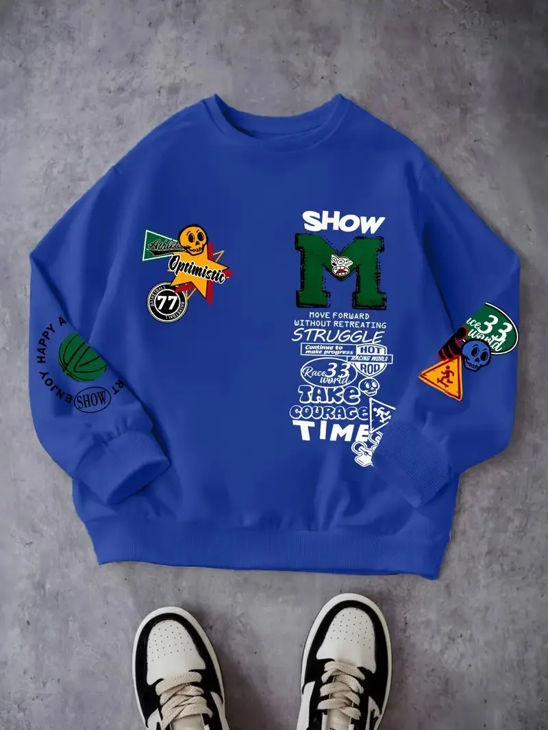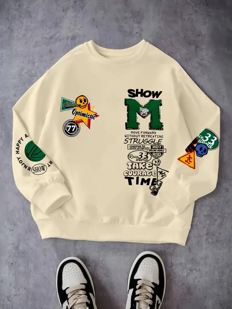- > O novo moletom masculino com gola redonda para primavera e outono de 2025 apresenta uma rua casual e moderna com estampa de letras 3D