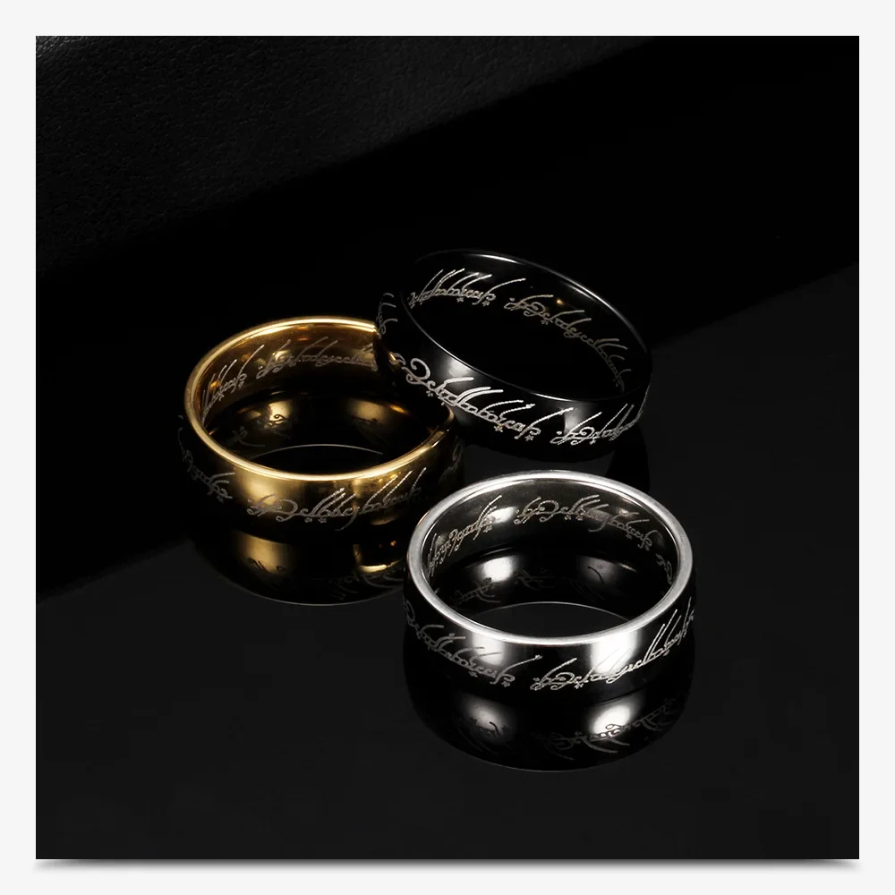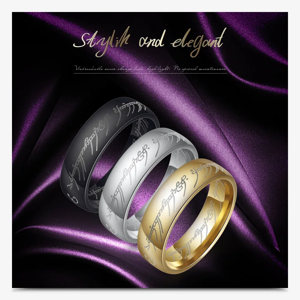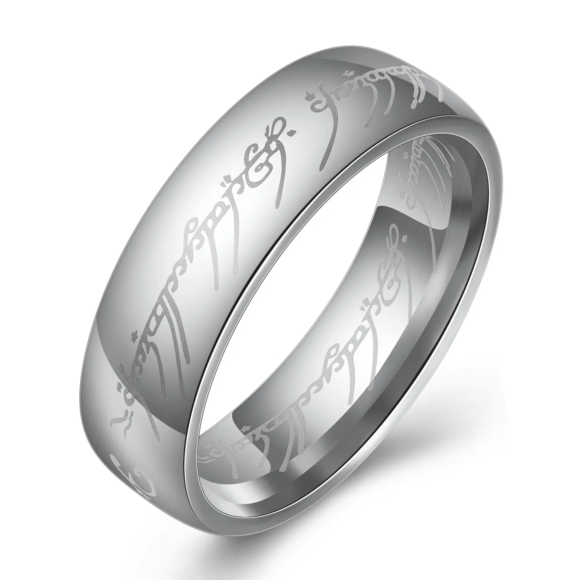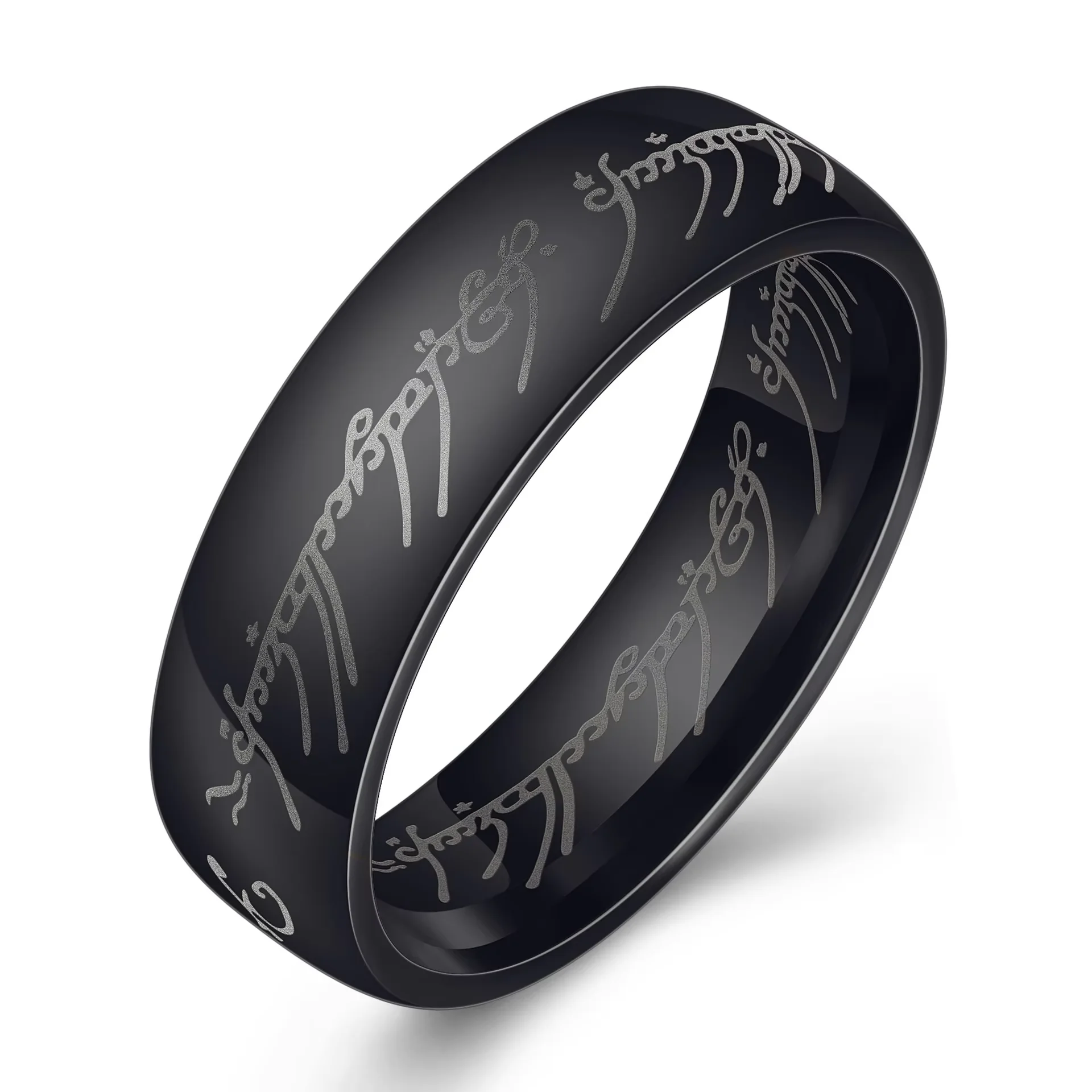 - > O Senhor dos Anéis de Aço Inoxidável Punk Homens 6MM Anel de Dedo Moda Casal Joias Presente