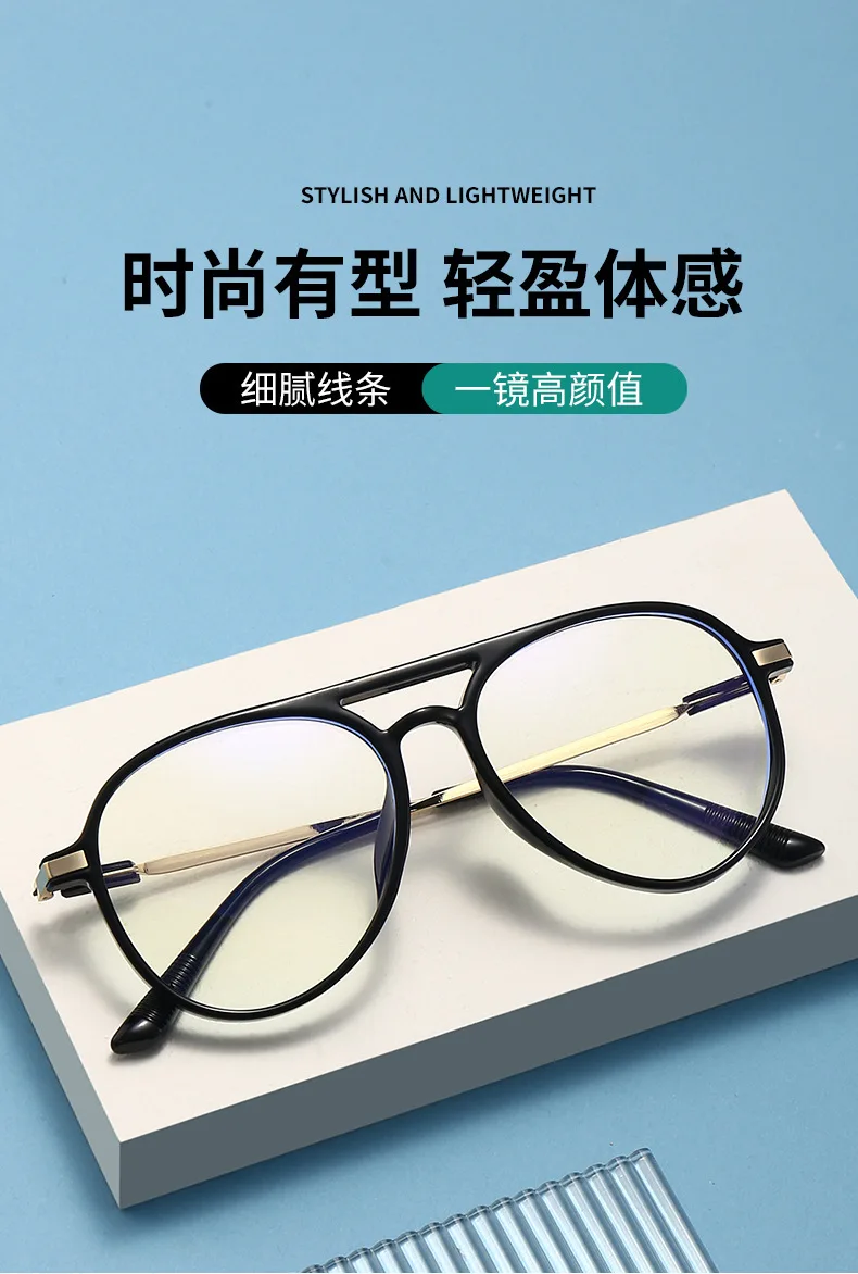 Óculos de leitura piloto grande, armação anti-luz azul, masculino e feminino, luz elegante, alta definição, jovem, alta qualidade, presbiopia