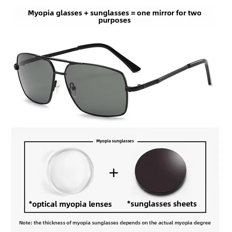 - > Óculos de sol piloto de miopia masculino polarizado proteção uv anti-reflexo óculos de condução com dioptria de visão próxima até-4.0