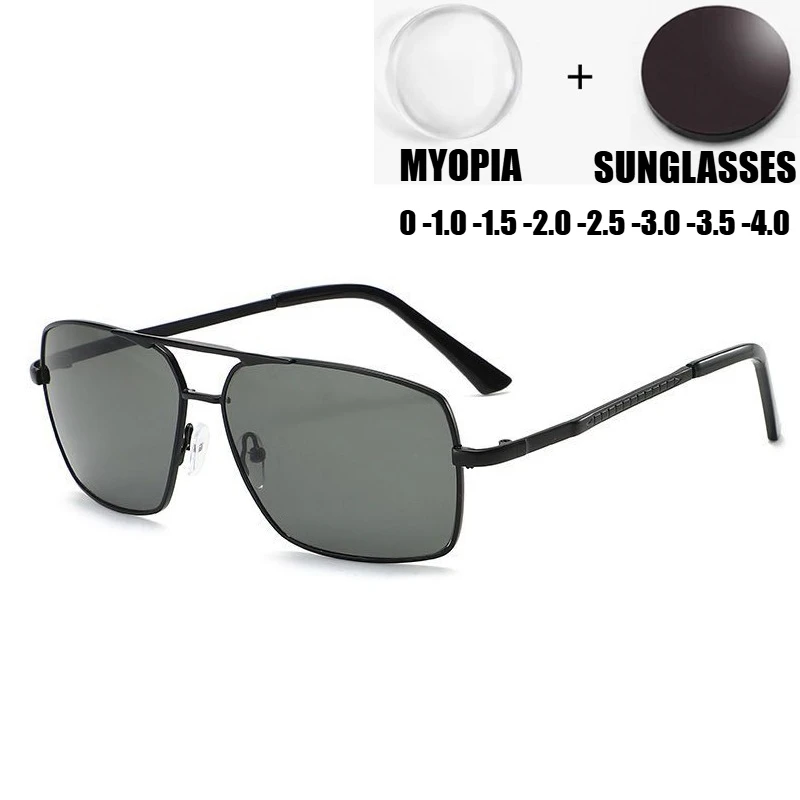 Óculos de sol piloto de miopia masculino polarizado proteção uv anti-reflexo óculos de condução com dioptria de visão próxima até-4.0
