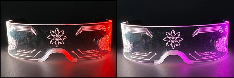quando você abre os óculos, os óculos LED mudam automaticamente a cor.