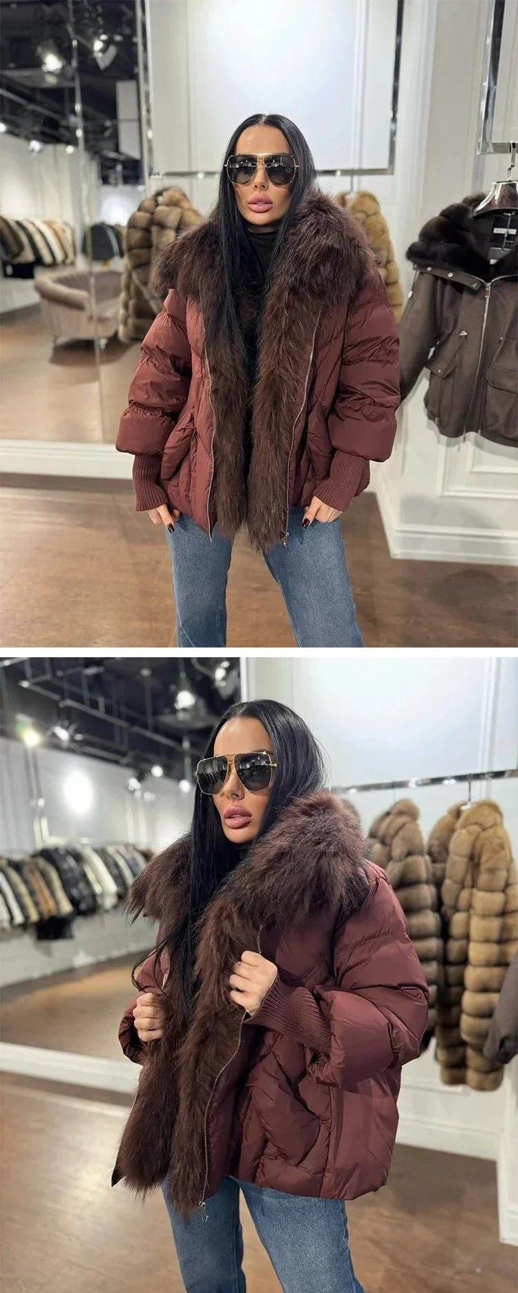 Material: pele de raposa real/raccoon + poliéster + enchimento de penas de pato |