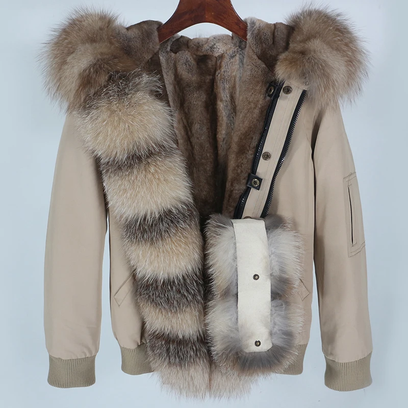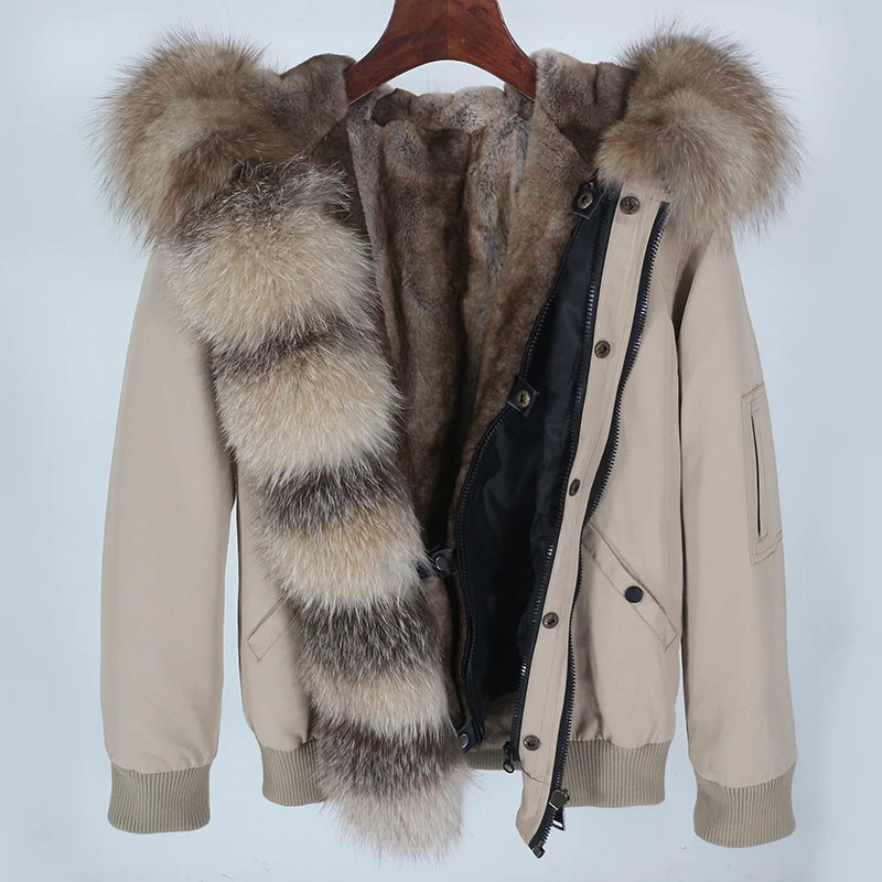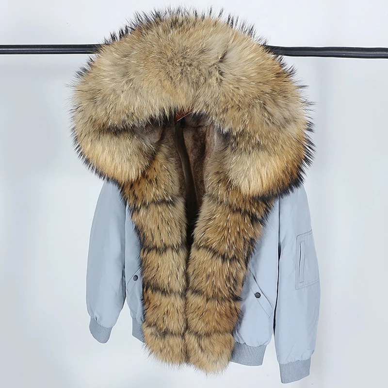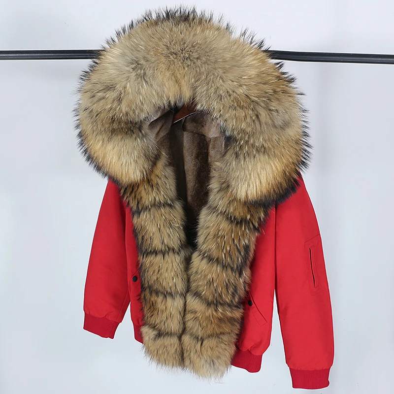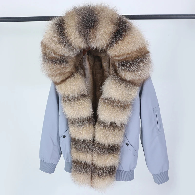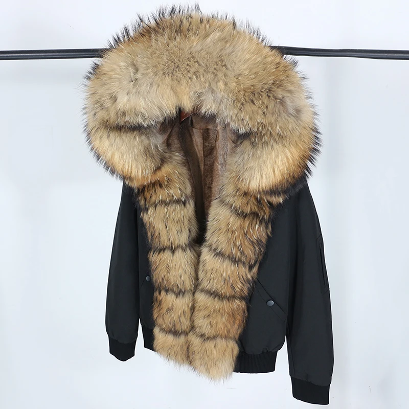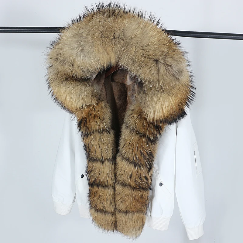- > Oftbuy jaqueta de inverno feminina pato para baixo parka real raposa gola de pele de guaxinim com capuz grosso quente streetwear outerwear casaco de pele natural