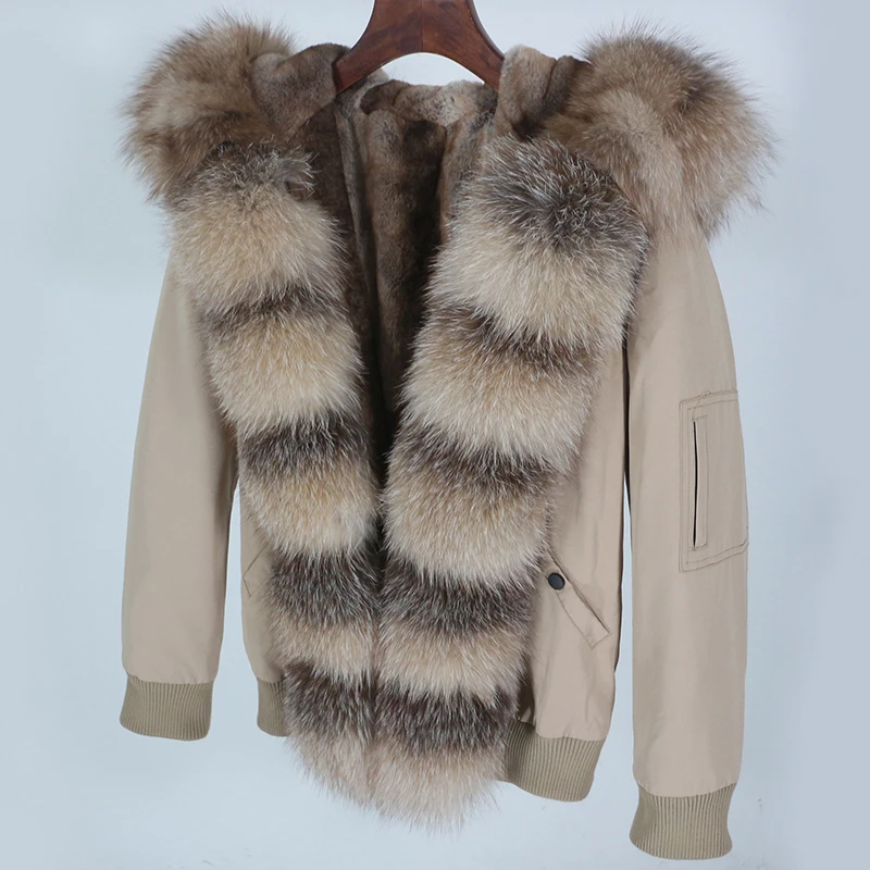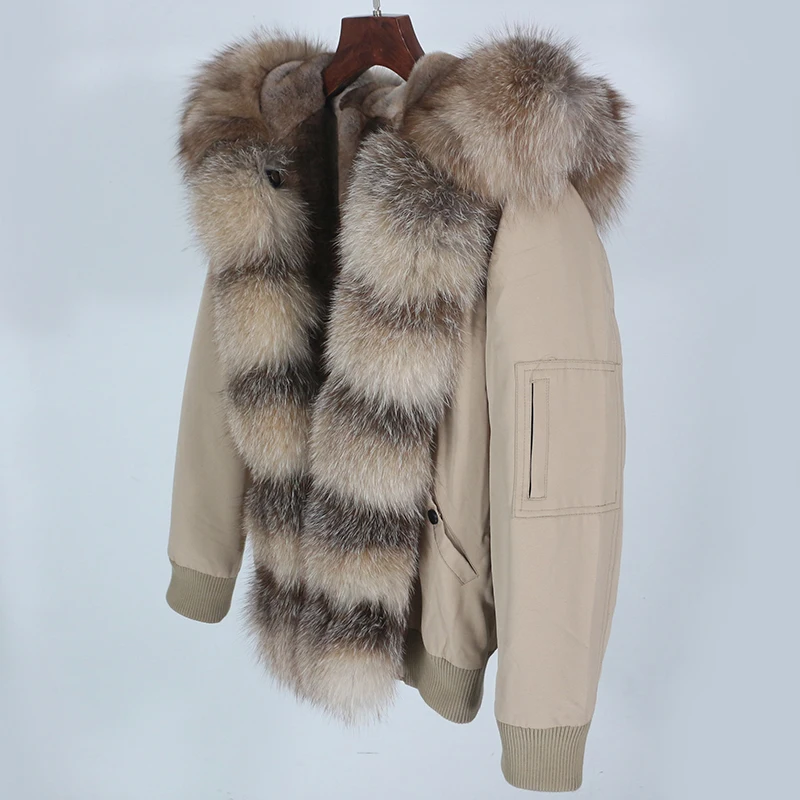 Oftbuy jaqueta de inverno feminina pato para baixo parka real raposa gola de pele de guaxinim com capuz grosso quente streetwear outerwear casaco de pele natural