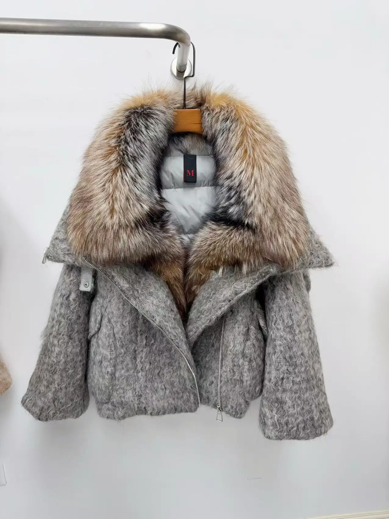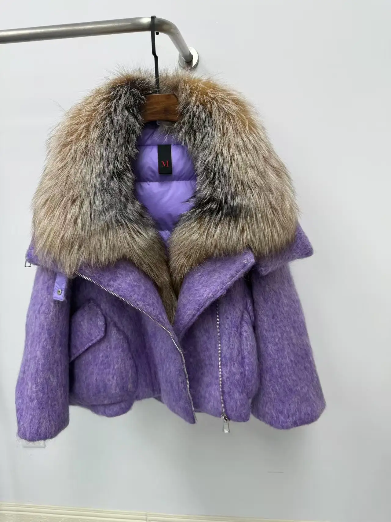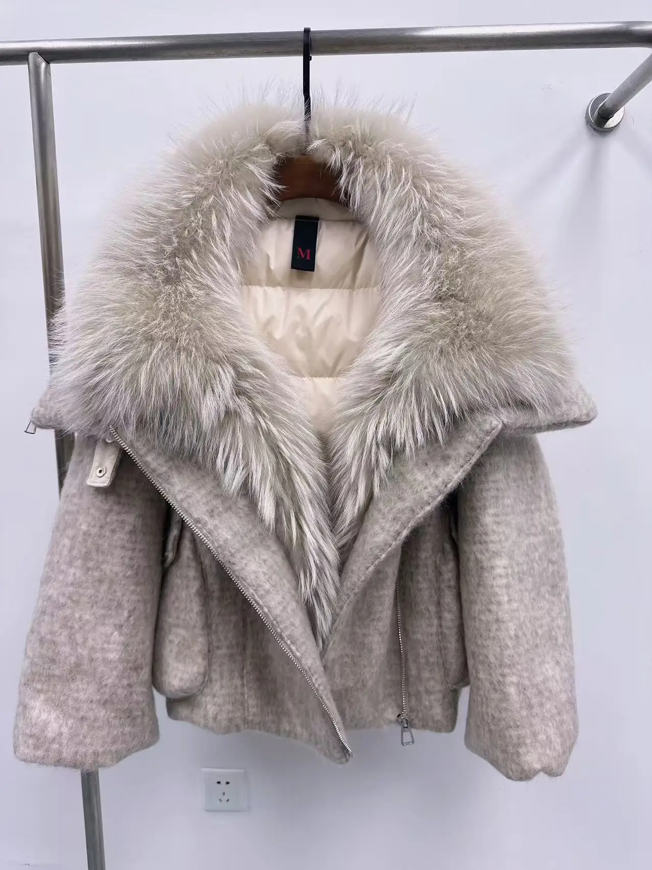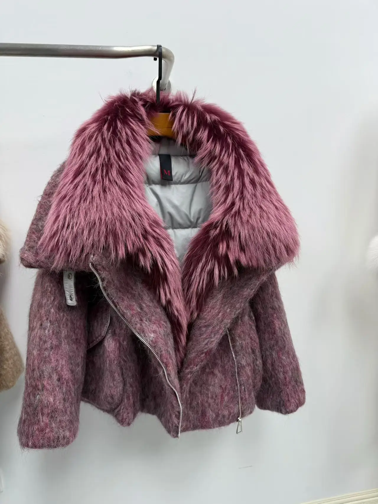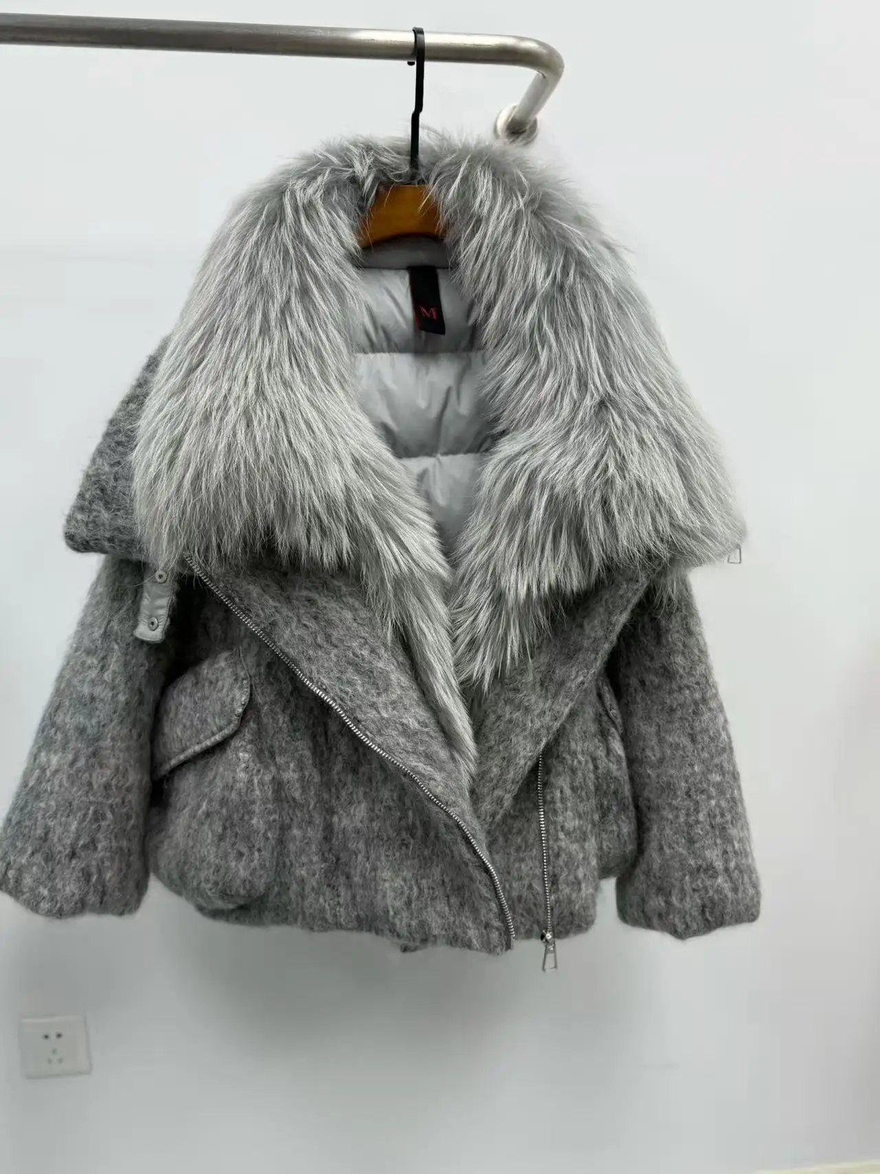 - > Oftbuy luxo curto grande pele de raposa ganso para baixo casaco feminino pele natural puffer jaqueta novo outono inverno engrossado roupas quentes