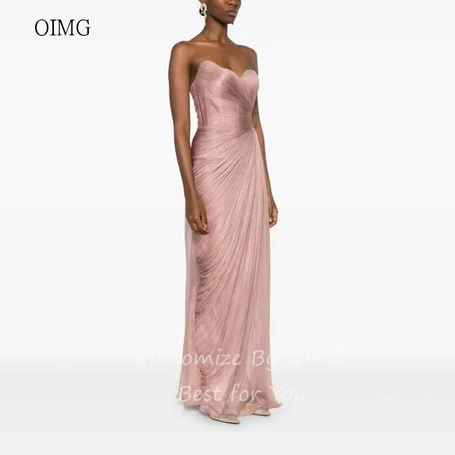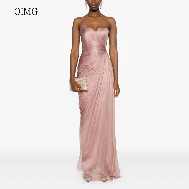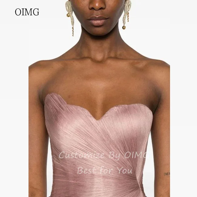 Oimg gracioso rosa sereia vestidos de baile sem alças plissado formal vestido de festa até o chão vestido de noite vestidos de gala personalizado