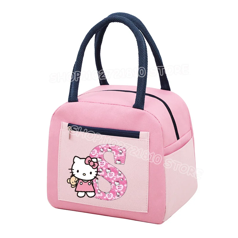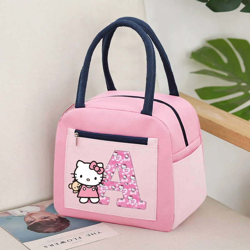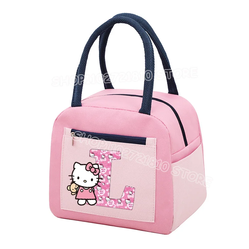 - > Olá kitty almoço saco criança refrigerador térmico meninas bonito dos desenhos animados carta A-Z lancheira grande capacidade piquenique escola escritório sacolas