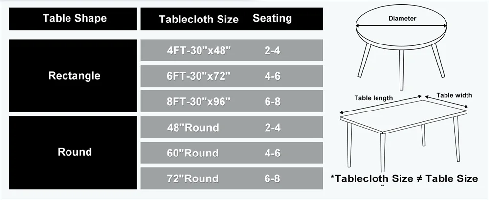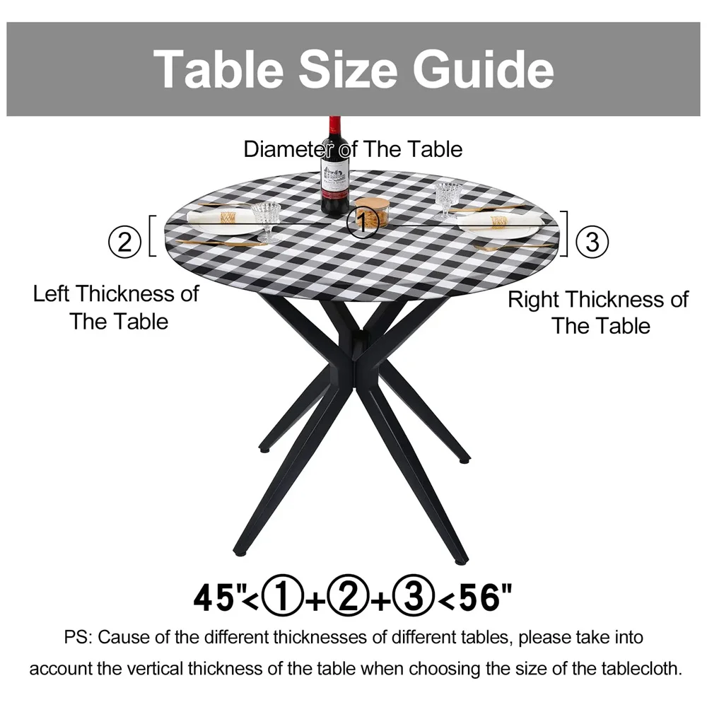 2 、 43-56 polegadas redondas: Nossas toalhas de mesa equipadas são adequadas para mesas redondas de 3 ou 4 assentos com um diâmetro variando de 45-56 polegadas e uma espessura variando de 1,7-2,3 polegadas.