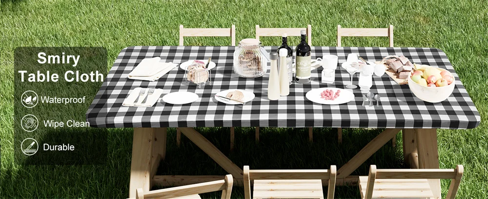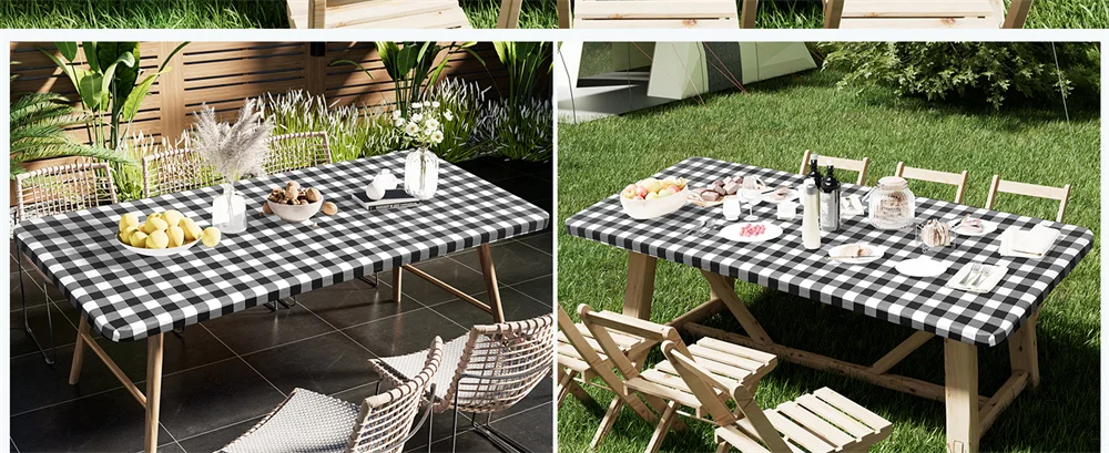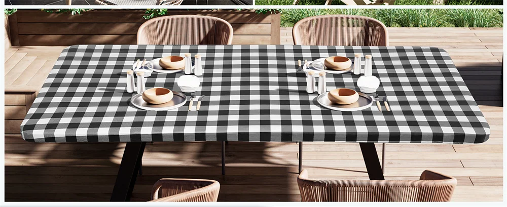 Nosso pano de mesa projetado com forte design bordas elásticas que prende-lo firmemente à mesa, mesmo quando está ventando fora. A toalha de mesa equipada não vai escorregar e permanece no lugar quando as pessoas se movem e puxam, para lhe proporcionar uma experiência de refeições sem preocupações em festas, piqueniques, camping, interior ou exterior