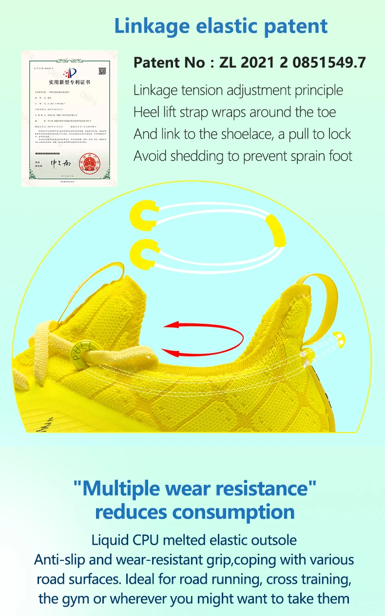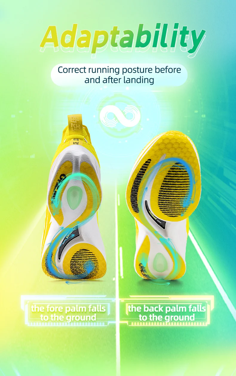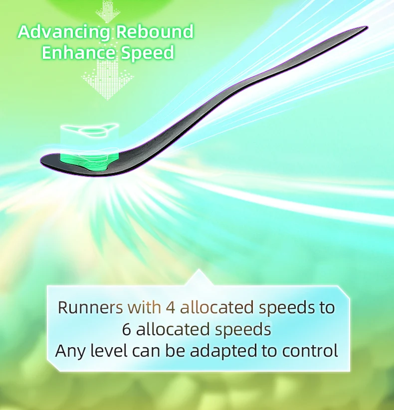 A urdidura da placa de carbono é consistente com o arco de marcha e o design ergonômico ajuda a aumentar a velocidade